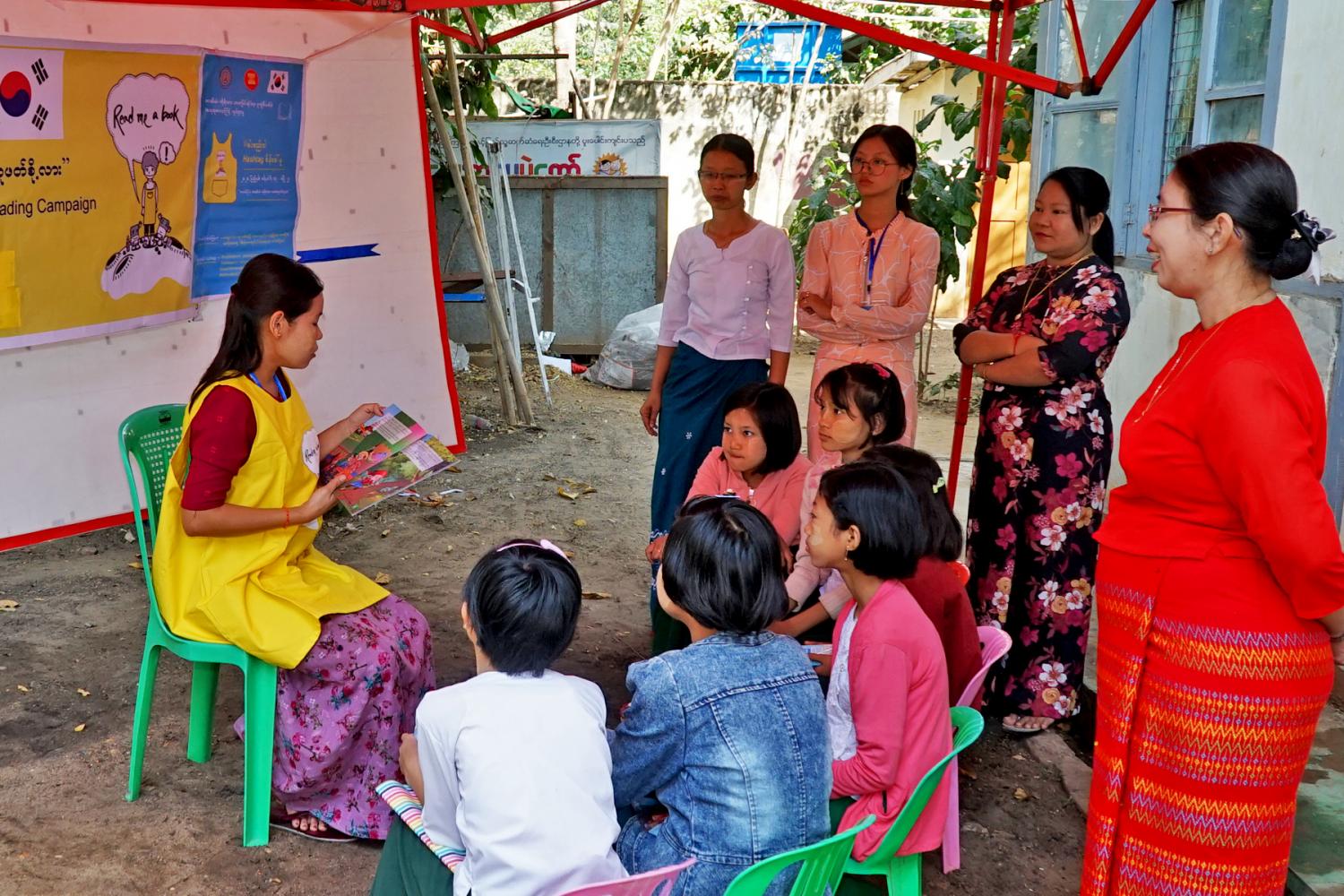လက်တွေ့စာဖတ်ပြခြင်း အစီအစဉ်တွင် သင်တန်းတက်ရောက်လာကြသူများက ကျောင်းသား ကျောင်းသူလေးများ၏ အသက်အရွယ်အလိုက် စာအုပ်စာပေများကို ခွဲခြား၍ ဖတ်ပြကြရာ ကလေးပုံပြင် စာအုပ်များ၊ သုတရသ ခံစားနိုင်စေမည့် ဝတ္ထုတိုနှင့်ဆောင်းပါးများကို အဖွဲ့(၁၀)ဖွဲ့ခွဲ၍ ဖတ်ပြ ဆောင်ရွက်ခဲ့ကြသည်။