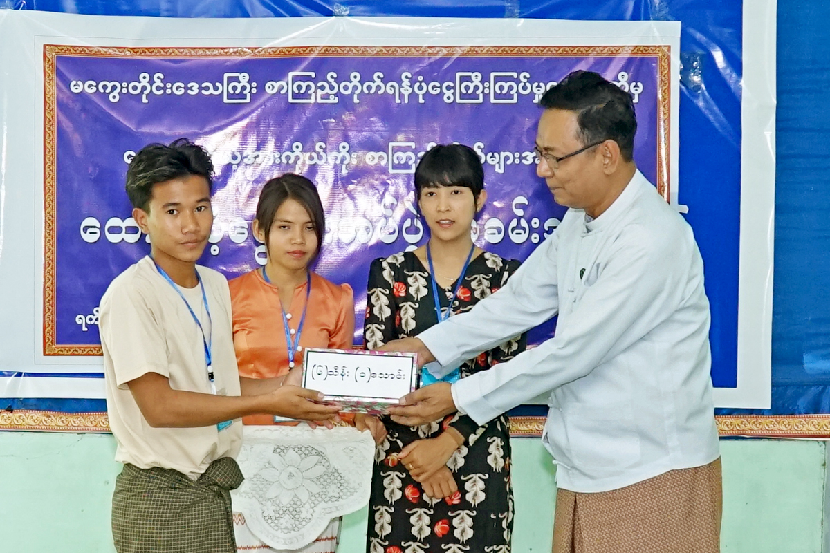 မကွေးတိုင်းဒေသကြီးအစိုးရအဖွဲ့ လူဝင်မှုကြီးကြပ်ရေးနှင့်လူ့စွမ်းအားအရင်းအမြစ်ဝန်ကြီး ဦးမြင့်အောင် ကျေးရွာစာကြည့်တိုက်များသို့ အလှူငွေနှင့် စာအုပ်စာစောင်များပေးအပ်ခြင်းအခမ်းအနားသို့ တက်ရောက်