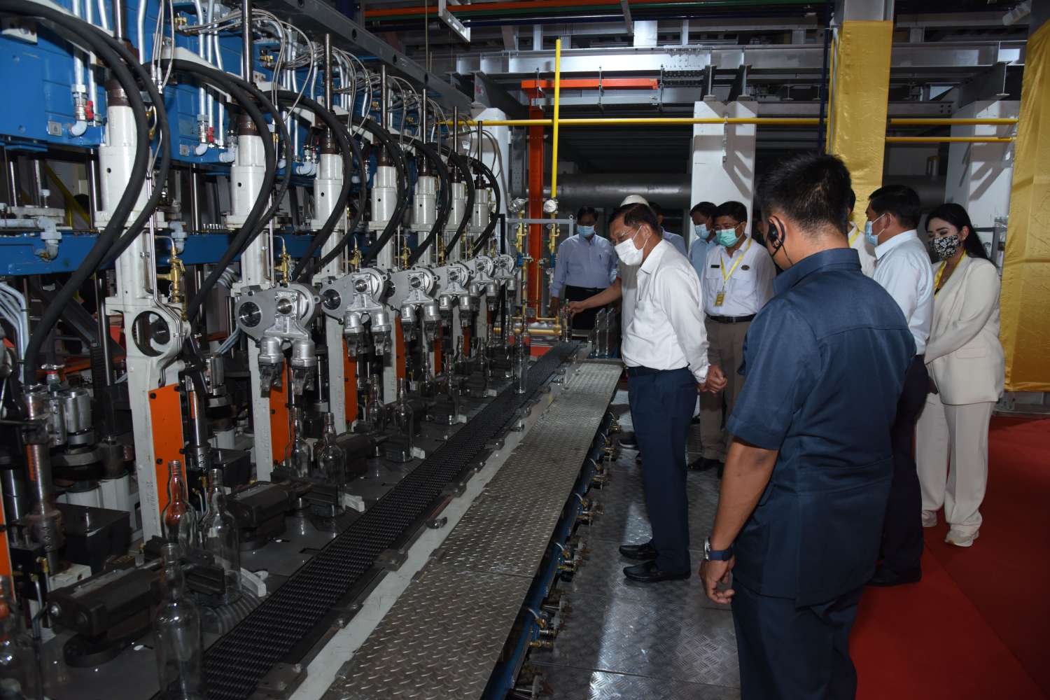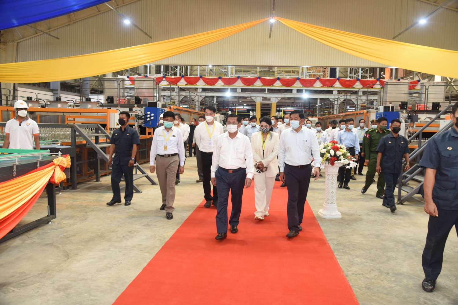 ယင်းနောက် နိုင်ငံတော်စီမံအုပ်ချုပ်ရေးကောင်စီဥက္ကဋ္ဌ နိုင်ငံတော်ဝန်ကြီးချုပ်နှင့် အခမ်းအနား တက်ရောက်လာကြသူများသည် စက်ရုံအတွင်း လှည့်လည် ကြည့်ရှုကြသည်။ ထို့နောက် နိုင်ငံတော်စီမံအုပ်ချုပ်ရေး ကောင်စီဥက္ကဋ္ဌ နိုင်ငံတော်ဝန်ကြီးချုပ်က ဖန်ချက်မီးဖို (FURNACE) အား စက်ခလုပ်နှိပ် မီးညှိဖွင့်လှစ်ပေးပြီး စက်ရုံအတွင်း ဆက်လက် လှည့်လည်ကြည့်ရှုကြသည်။