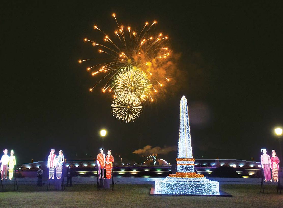 ဂုဏ်ပြုညစာစားပွဲ အခမ်းအနားတွင် (၇၄)နှစ်မြောက် လွတ်လပ်ရေးနေ့အထိမ်း အမှတ် မီးရှူးမီးပန်းများပစ်ဖောက် ဂုဏ်ပြုကြသည်။ နိုင်ငံတော်စီမံအုပ်ချုပ်ရေး ကောင်စီဥက္ကဋ္ဌ၊ နိုင်ငံတော် ဝန်ကြီးချုပ်နှင့်ဇနီး၊ အခမ်းအနားတက်ရောက်လာကြသူများ သည် ညစာမသုံးဆောင်မီနှင့် သုံးဆောင်နေ စဉ်အတွင်း မြန်မာ့အသံခေတ်ပေါ် တေးဂီတအဖွဲ့နှင့်တွဲဖက်၍ သာသနာရေးနှင့် ယဉ်ကျေးမှုဝန်ကြီးဌာန အနုပညာဦးစီးဌာနမှ အနုပညာရှင်များ၏ တေးသံသာများဖြင့် သီဆိုတီးမှုတ်ဖျော်ဖြေမှုများကို ကြည့်ရှုအားပေးခဲ့ကြသည်။