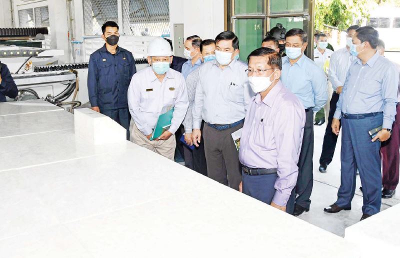နိုင်ငံတော်စီမံအုပ်ချုပ်ရေးကောင်စီဥက္ကဋ္ဌ၊ တပ်မတော်ကာကွယ်ရေးဦးစီးချုပ် ဗိုလ်ချုပ်မှူးကြီး မင်းအောင်လှိုင် နို့စားနွားမွေးမြူရေးစီမံကိန်း(ထုံးဘို)နှင့် မာဘယ်ကျောက်ပြား ထုတ် လုပ်ရေးစက်ရုံ (မန္တလေး)တို့သို့ သွားရောက်ကြည့်ရှုစစ်ဆေး