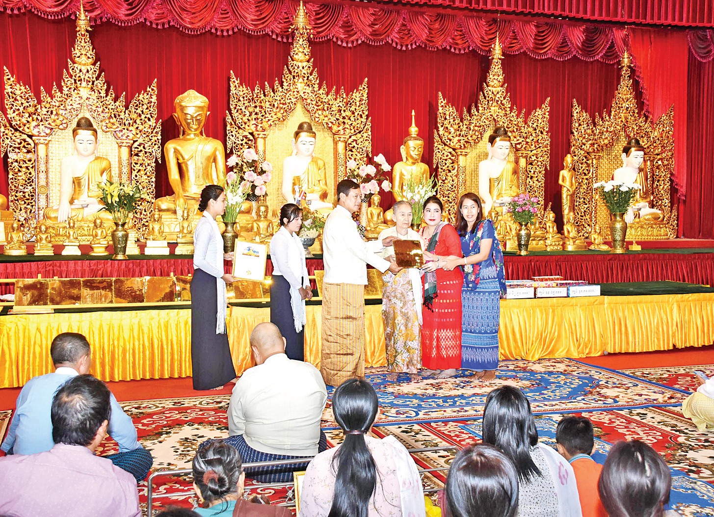 ရှေးဦးစွာ အလှူရှင်များက အလှူတော်ငွေများကို ပေးအပ်လှူဒါန်းရာ ဘဏ္ဍာတော်ထိန်းဂေါပကအဖွဲ့ အလှည့် ကျ သဘာပတိ ဒေါက်တာရဲအောင်နှင့် အဖွဲ့ဝင်များ က လက်ခံပြီး ထုတိအနုမောဒနာ ဂုဏ်ပြု မှတ်တမ်းလွှာများ ပြန်လည်ပေးအပ်သည်။