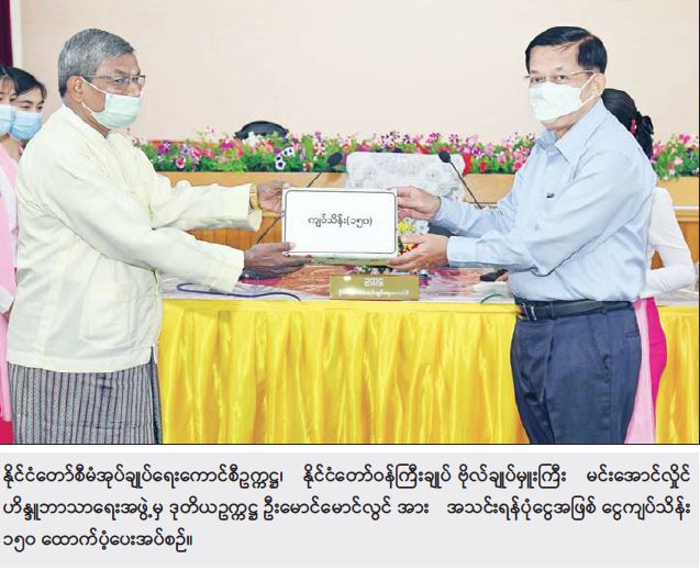 ယင်းနောက် နိုင်ငံတော်စီမံအုပ်ချုပ်ရေးကောင်စီဥက္ကဋ္ဌ၊ နိုင်ငံတော်ဝန်ကြီးချုပ်က မန္တလေးမြို့ရှိ ဘာသာရေးအသင်းအဖွဲ့များအတွက် မေတ္တာလက်ဆောင်ပစ္စည်းများနှင့် အသင်းရန်ပုံငွေအဖြစ် တစ်သင်းလျှင်ကျပ်သိန်း ၁၅၀ ထောက်ပံ့ပေးအပ်ရာဘာသာရေး ခေါင်းဆောင် အသီးသီးက လက်ခံရယူသည်။