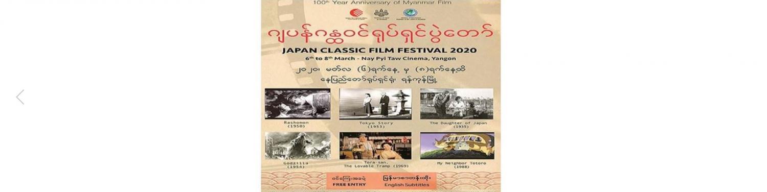 မြန်မာ့ရုပ်ရှင်နှစ်(၁၀၀)ပြည့်ကို ကြိုဆိုဂုဏ်ပြုသောအားဖြင့် ဂျပန်ဂန္ထဝင် ရုပ်ရှင်ပွဲတော် (Japanese Classic Film Festival)ကို ရန်ကုန်မြို့ နေပြည်တော် ရုပ်ရှင်ရုံတွင် မတ် ၆ ရက်မှ ၈ ရက်အထိ မြန်မာနိုင်ငံဆိုင်ရာ ဂျပန်သံရုံး၏ အစီအစဉ်ဖြင့် ကျင်းပမည်ဖြစ်သည်။
