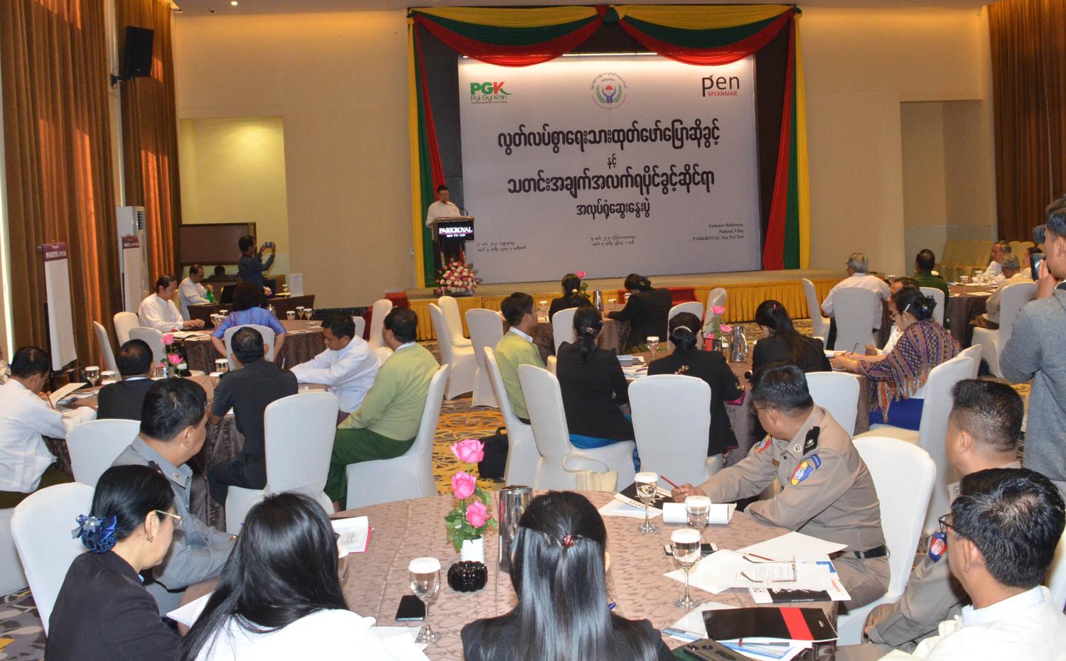 မြန်မာနိုင်ငံ အမျိုးသားလူ့အခွင့်အရေးကော်မရှင်၊ Pen Myanmar အဖွဲ့နှင့် ပြည်ကြီးခင်အဖွဲ့တို့ ပူးပေါင်းကျင်းပသည့် လွတ်လပ်စွာရေးသားထုတ်ဖော် ပြောဆိုခွင့်နှင့် သတင်းအချက်အလက် ရပိုင်ခွင့်ဆိုင်ရာ အလုပ်ရုံဆွေးနွေးပွဲကို ယနေ့နံနက် ၉ နာရီတွင် နေပြည်တော်ရှိ Park Royal ဟိုတယ်၌ ကျင်းပသည်။