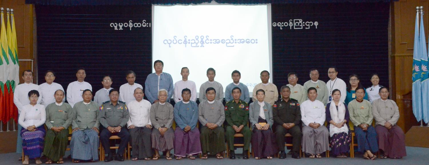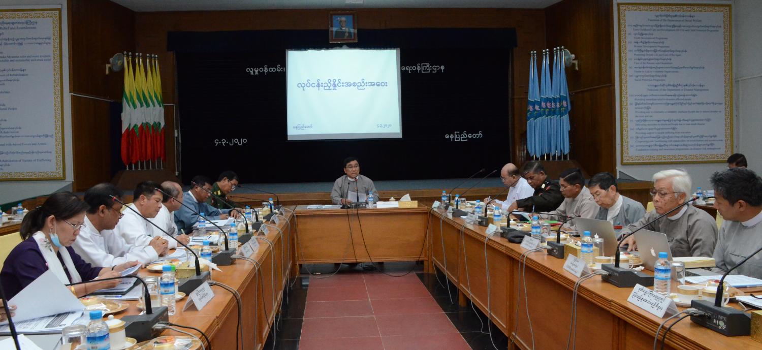 နေရပ်စွန့်ခွာသူများ ပြန်လည်လက်ခံရေးနှင့် ပြန်လည်နေရာချထားရေးအတွက် နိုင်ငံတော် အစိုးရ၊ UNDP ၊UNHCR တို့အကြား ချုပ်ဆိုထားသော နားလည်မှုစာချွန်လွှာအရ သက်ဆိုင်သည့် ဌာနဆိုင်ရာကိုယ်စားလှယ်များ၊ UNDP ၊ UNHCR တို့မှ ကိုယ်စားလှယ်များပါဝင်သော နည်းပညာ လုပ်ငန်းအဖွဲ့၏ ရခိုင်ပြည်နယ်၊ ဘူးသီးတောင်နှင့် မောင်တောမြို့နယ်များအတွင်း ကွင်းဆင်း လေ့လာတွေ့ရှိချက်များနှင့် စပ်လျဉ်း၍ အကောင်အထည်ဖော်ဆောင်ရွက်နိုင်ရေး ညှိနှိုင်းအစည်းအဝေးကို ယနေ့ မွန်းလွဲပိုင်းက လူမှုဝန်ထမ်း၊ ကယ်ဆယ်ရေးနှင့် ပြန်လည် နေရာချထားရေးဝန်ကြီး ဌာန၊ အစည်းအဝေးခန်းမ၌ ကျင်းပသည်။