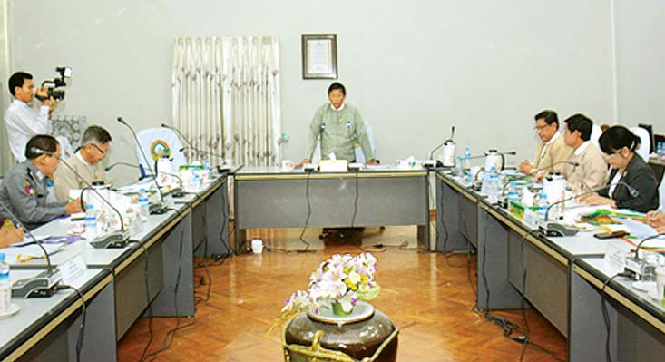 အစည်းအဝေးသို့ မြေဩဇာကော်မတီဥက္ကဋ္ဌ ဒုတိယဝန်ကြီး ဦးလှကျော်နှင့် ကော်မတီဝင်များ တက်ရောက်ဆွေးနွေးကြသည်။