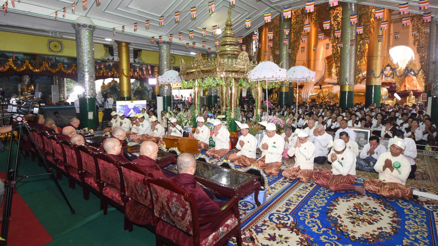 ထို့နောက် ရန်ကုန်တိုင်းဒေသကြီး သံဃနာယကအဖွဲ့ဥက္ကဋ္ဌ သာကေတမြို့နယ် တိပိဋကလင်္ကာရကျောင်းတိုက် ဆရာတော် အဂ္ဂမဟာပဏ္ဍိတ၊ အဂ္ဂမဟာဂန္ထဝါစက ပဏ္ဍိတ မဟာဂန္ထဝါစကပဏ္ဍိတ ဘဒ္ဒန္တအဂ္ဂသာမိထံမှ ဂေါပကအဖွဲ့ဝင်များ၊ ဘာသာရေး ဝတ်အသင်း အဖွဲ့များနှင့် အလှူရှင်များက လှူဒါန်းမှုအစုစုတို့အတွက် အနုမောဒနာတရား နာယူကြပြီး ရေစက်သွန်းချအမျှပေး ဝေကြသည်။