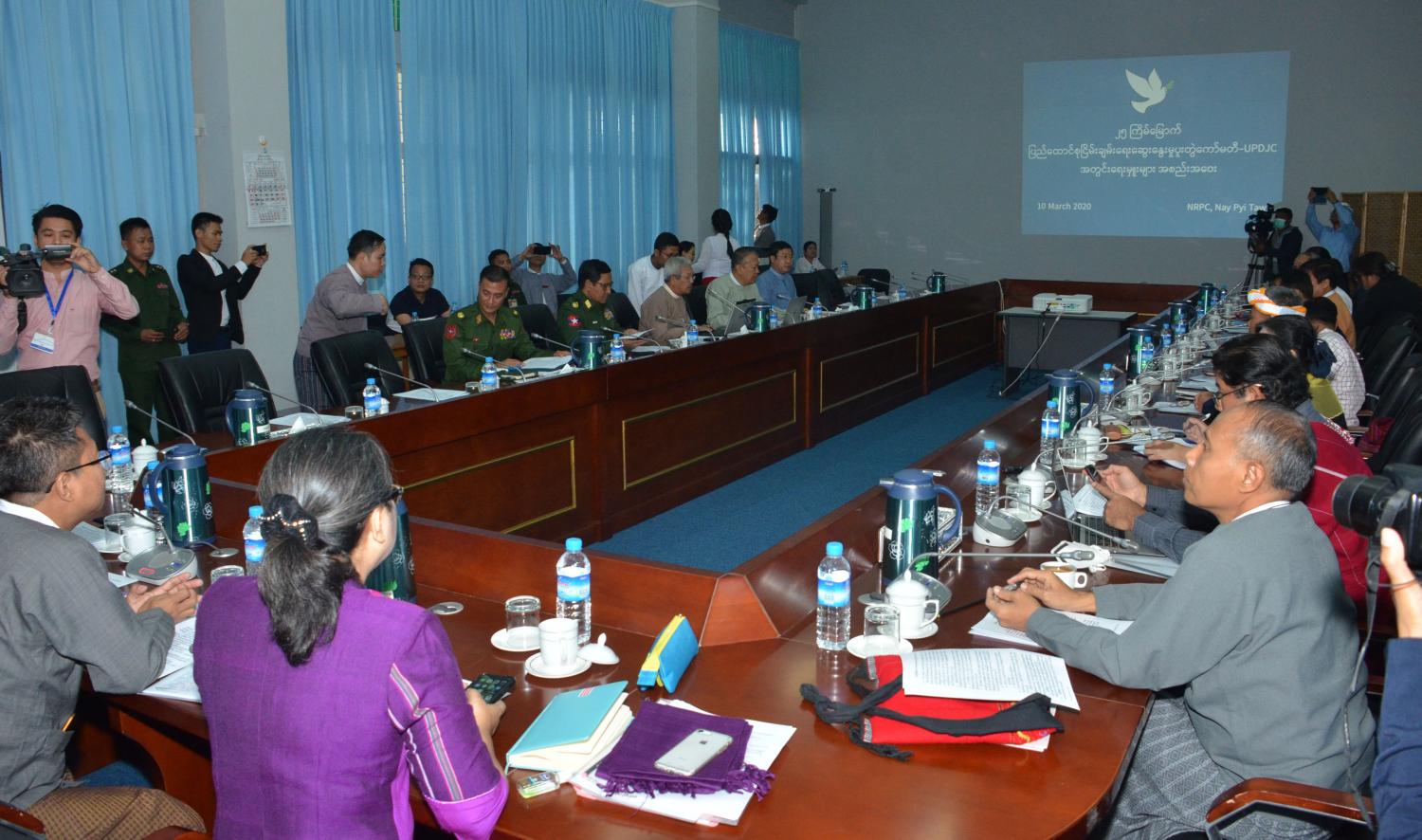 (၁၈)ကြိမ်မြောက် ပြည်ထောင်စုငြိမ်းချမ်းရေးဆွေးနွေးမှု ပူးတွဲကော်မတီ- UPDJC အစည်းအဝေးကို ၂၀၂၀ ပြည့်နှစ် မတ် ၁၂ ရက်တွင် နေပြည်တော်ရှိ အမျိုးသားပြန်လည်သင့်မြတ်ရေးနှင့် ငြိမ်းချမ်းရေးဗဟိုဌာန (NRPC) ၌ ကျင်းပရန် လျာထားကြောင်း သိရသည်။