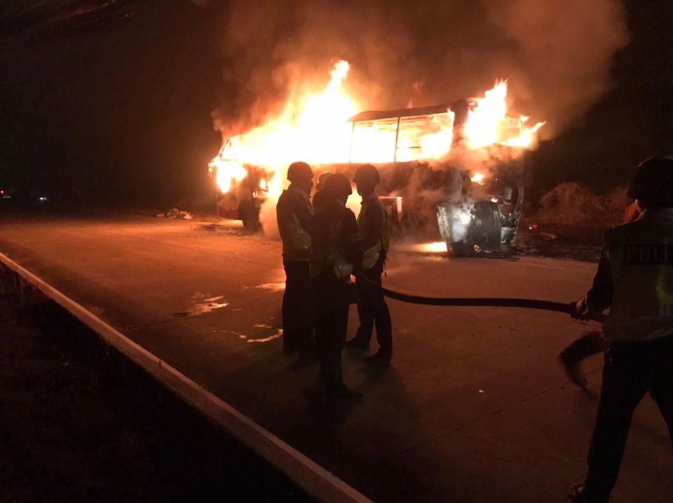 အဆိုပါဖြစ်စဉ်ကြောင့် Express ယာဉ်တစ်စီးလုံး မီးလောင်ကျွမ်းသွားခဲ့ပြီး ယာဉ်ပေါ်ပါ ယာဉ်မောင်း/ ယာဉ်နောက်လိုက် အပါအဝင် ခရီးသည်ကျား(၁၂) ဦးမ(၂၀) ဦးပေါင်း (၃၂) ဦးတို့တွင် ထိခိုက် ဒဏ်ရာ ရရှိမှုမရှိခဲ့ကြောင်းနှင့် မီးငြိမ်းသတ်နိုင်ရေးအတွက်အမြန်လမ်းမကြီးရဲတပ်ဖွဲ့ ဘောနတ်ကြီးစခန်းမှ တပ်ဖွဲ့ဝင် များနှင့် အထောက်အကူပြု အဖွဲ့ များ ကူညီဆောင်ရွက်လျက် ရှိကြောင်း သိရသည်။
