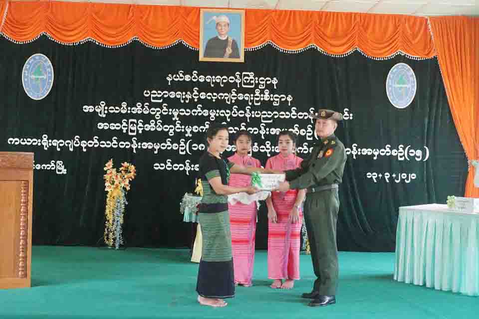 ဆက်လက်၍ အဆင့်မြင့်အိမ်တွင်းမှုစက်ချုပ်သင်တန်းအမှတ်စဉ်(၁)တွင် ထူချွန်ဆုရရှိသူ လွိုင်ကော်မြို့နယ်မှ မပိုးမြာ၊ ကယားရိုးရာဂျပ်ခုတ်သင်တန်း အမှတ်စဉ်(၁၈)တွင် ထူးချွန်းဆုရရှိသူ ဖရူဆိုမြို့နယ်မှ နော်ချယ်ရီလင်းနှင့် အခြေခံသိုးမွေး စက်ဆွဲသင်တန်း အမှတ်စဉ်(၁၅)တွင် ထူးချွန်ဆုရရှိသူ ဖားဆောင်းမြို့နယ်မှ မခိုင်ဇာဝင်းအား ပြည်နယ်ဝန်ကြီးချုပ်နှင့် တာဝန်ရှိသူများက ဂုဏ်ပြုဆုငွေများပေးအပ်ချီးမြှင့်ခြင်းနှင့် သင်တန်းဆင်း အောင်လက်မှတ်များကို ပေးအပ်ချီးမြှင့်ခဲ့သည်။
