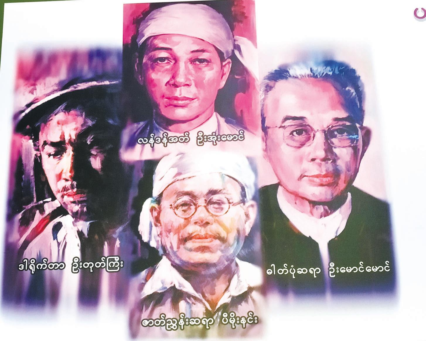 ဗိုလ်ချုပ်အောင်ဆန်း တက်ရောက်ခဲ့သော ထိုငွေရတုသဘင်အခမ်းအနား ပန်းချီကားကြီးအောက်ဘက်တွင် ရွှေရောင်တောက်နေသောကိုယ်တစ်ပိုင်းပုံ ရုပ်တုသုံးခု စီတန်းလျက်တွေ့ရသည်။ ထိုရုပ်တုသုံးရုပ်မှာ အလယ်ကောင်တည့်တည့်က အရုပ်မှာ ပထမဆုံးသော ရုပ်ရှင်မင်းသားကြီး ဦးညီပုပင်ဖြစ်သည်။ ညာဘက်တွင် ဓာတ်ပုံဆရာ ဦးမောင်မောင်ဖြစ်ပြီး ဘယ်ဘက်တွင်မူ လန်ဒန်အတ် ဦးအုန်းမောင်ဖြစ်သည်။ သူတို့ သုံးဦးသည် မြန်မာ့ရုပ်ရှင်လောကကို စတင်တည်ထောင်သူ များအဖြစ် ရုပ်ရှင်လောကသားများက မှတ်တမ်းတင်ခဲ့ကြလေသည်။ တစ်နည်းအားဖြင့် မြန်မာ့ရုပ်ရှင်၏ ဖခင်ကြီးများဟုပင် ဆိုကြသည်။