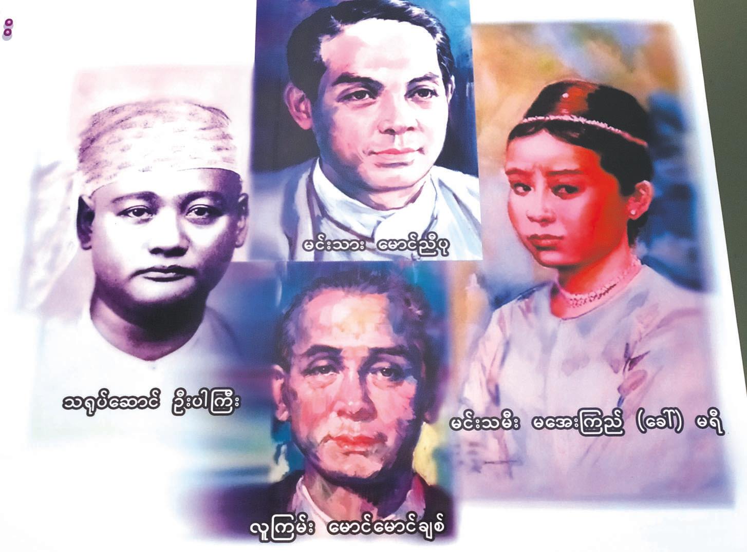 အလားတူ ဆိုင်းဘုတ်၏ ညာဘက်ထိပ်တွင် မင်းသားဦးညီပု၊ သရုပ်ဆောင်ဦးပါကြီး၊ မင်းသမီးမအေးကြည် (ခေါ်) မရီ၊ လူကြမ်းမောင်မောင်ချစ်တို့ကိုလည်း ရုပ်ပုံများနှင့်တကွဖော်ပြထားသည်။ ဤသည်ကား မြန်မာ့ပထမဆုံး ရုပ်ရှင်ကားကြီးပေါ်ထွက်လာရေးအတွက် ကြိုးပမ်းအားထုတ်ကြသူများပင်ဖြစ်၏။