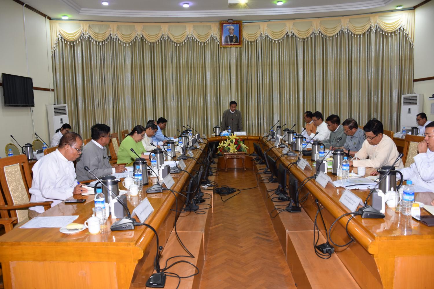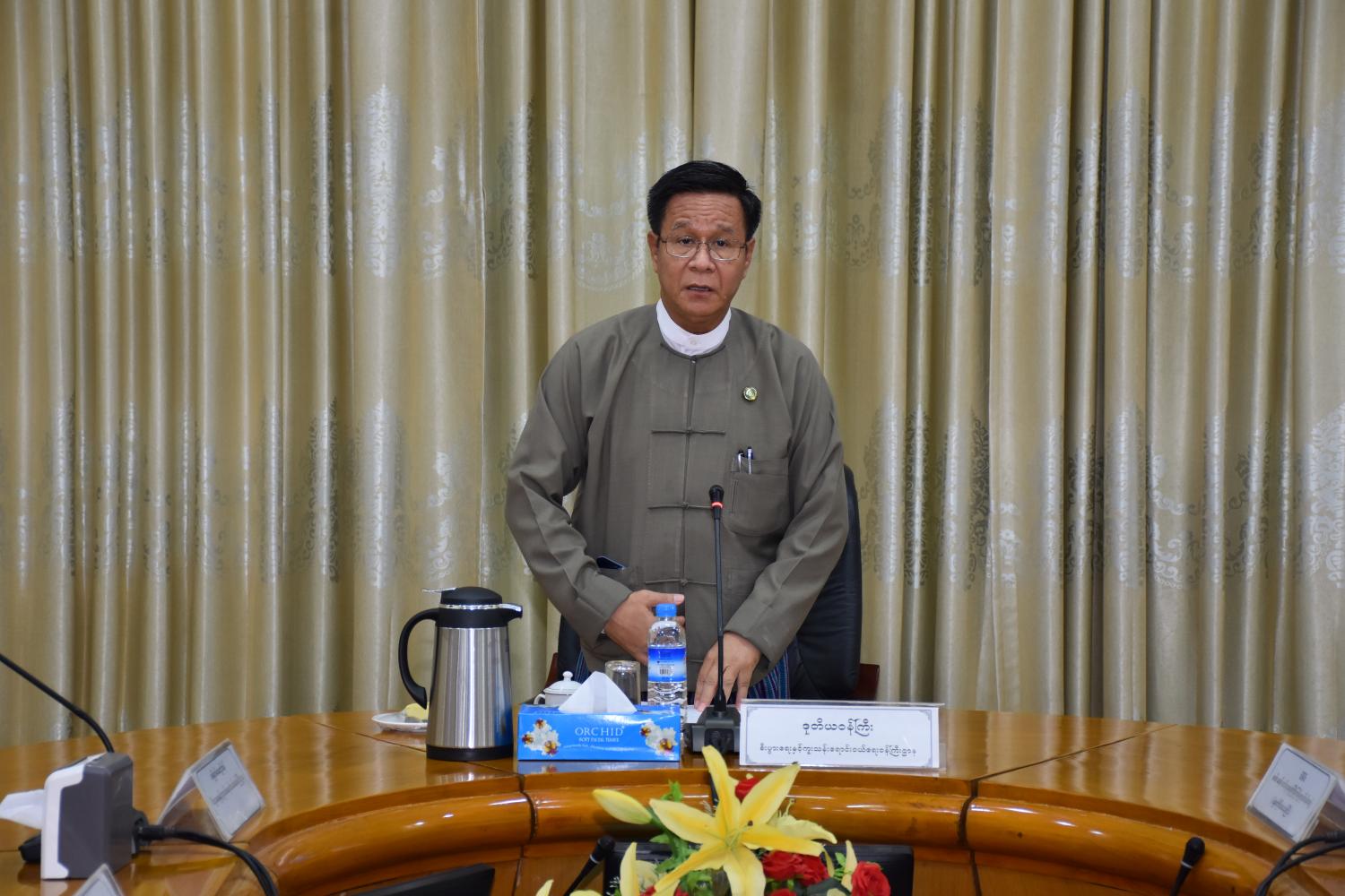 ထို့နောက် တိုင်းဒေသကြီး စပါးဆန်ဝယ်ယူရေး ကြီးကြပ်မှုလုပ်ငန်းအဖွဲ့ဝင်များက မိုးစပါးဝယ်ယူရေး ဆောင်ရွက် ပြီးစီးမှုနှင့် တင်ဒါစနစ်ဖြင့် ဆန်ပြန်လည် ရောင်းချရေး အတွက် တင်ဒါစည်းမျဉ်းစည်းကမ်းများ သတ်မှတ်နိုင်ရေးတို့ကို အကြံပြုဆွေးနွေးတင်ပြကြသည်။