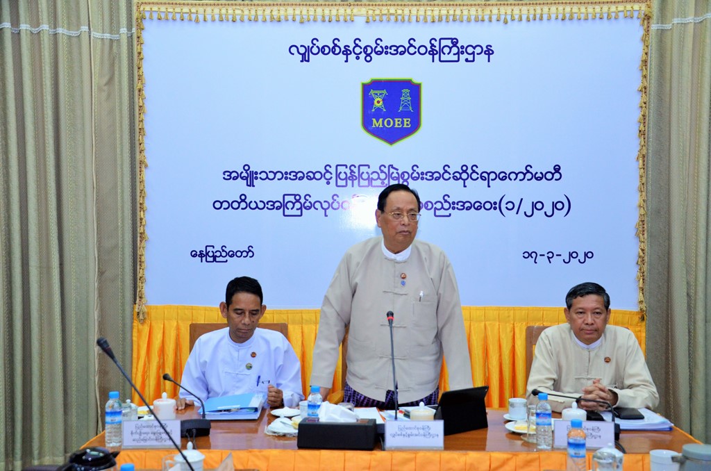 အမျိုးသားအဆင့် ပြန်ပြည့်မြဲစွမ်းအင်ဆိုင်ရာကော်မတီ၏ တတိယအကြိမ် လုပ်ငန်းညှိနှိုင်း အစည်းအဝေး (၁/၂၀၂၀) ကို ယနေ့မွန်းလွဲ ၁ နာရီတွင် နေပြည်တော်ရှိ  လျှပ်စစ်နှင့်စွမ်းအင်ဝန်ကြီးဌာန အစည်းအဝေး ခန်းမ၌ ကျင်းပသည်။