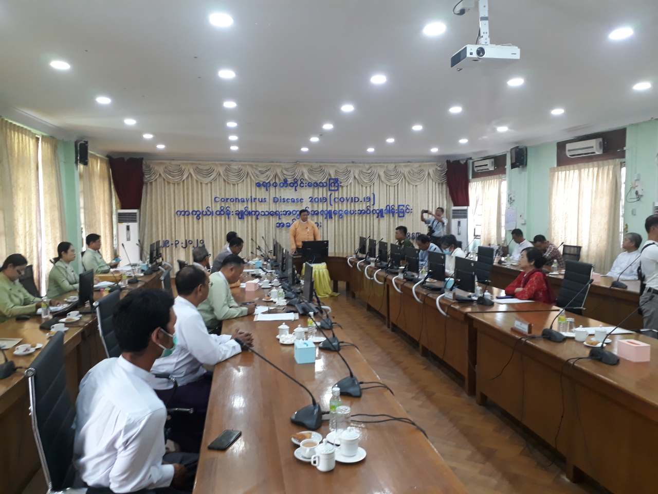 အခမ်းအနားတွင် ဧရာဝတီတိုင်းဒေသကြီး ဘဏ္ဍာငွေရှာဖွေထိန်းသိမ်းရေးကော်မတီဥက္ကဋ္ဌ တိုင်းဒေသကြီးအစိုးရအဖွဲ့ စီမံကိန်းနှင့်ဘဏ္ဍာရေးဝန်ကြီး ဦးဌေးဝင်းနှင့် တိုင်းဒေသကြီး ပြည်သူ့ကျန်းမာရေး ဦးစီးဌာနမှူး ဒေါက်တာသန်းထွန်းအောင်တို့က ကိုရိုနာဗိုင်းရပ်(စ်)ရောဂါ နှင့် ပတ်သက်၍ဆောင်ရွက်ထားရှိမှုများကို ရှင်းလင်းတင်ပြကြကြောင်းသိရသည်။