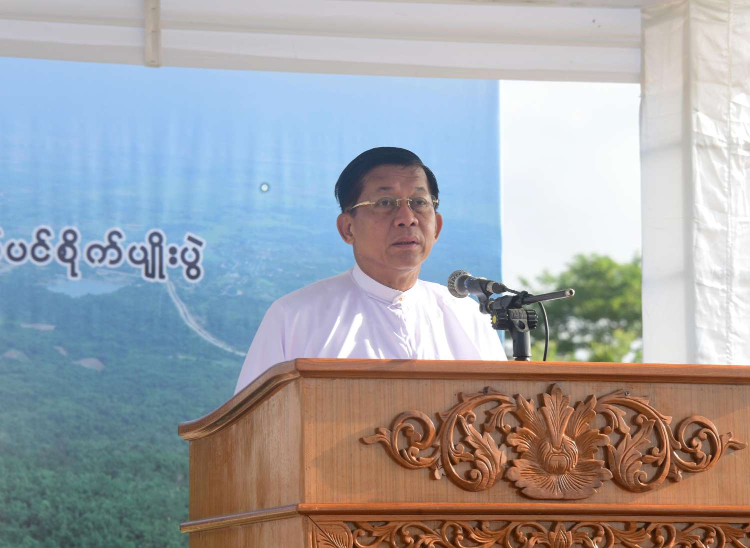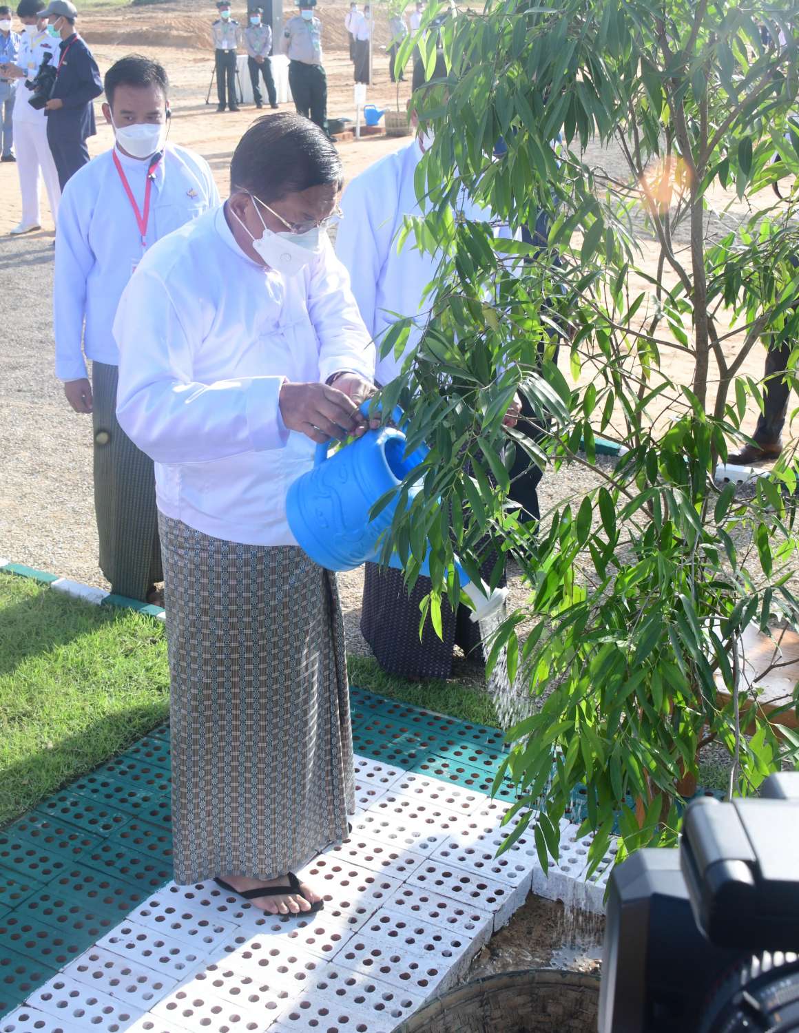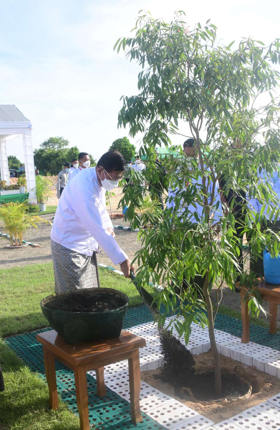 နိုင်ငံတော်စီမံအုပ်ချုပ်ရေးကောင်စီဥက္ကဋ္ဌ နိုင်ငံတော်ဝန်ကြီးချုပ် ဗိုလ်ချုပ်မှူးကြီး မင်းအောင်လှိုင် ပြည်ထောင်စုနယ်မြေ နေပြည်တော် ၂၀၂၂ ခုနှစ် မိုးရာသီသစ်ပင်စိုက်ပျိုးပွဲသို့ တက်ရောက်၍ ကံ့ကော်ပင်အား ဦးဆောင်စိုက်ပျိုးပေး