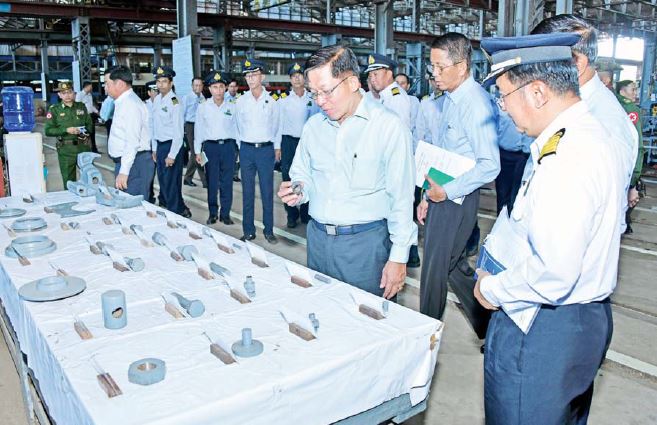 ယင်းနောက် နိုင်ငံတော်စီမံအုပ်ချုပ်ရေးကောင်စီဥက္ကဋ္ဌ နိုင်ငံတော်ဝန်ကြီးချုပ်နှင့် အဖွဲ့ဝင်များသည် မီးရထားစက်ခေါင်းစက်ရုံအတွင်း မီးရထားစက်ခေါင်းများထုတ်လုပ် တပ်ဆင်နေမှု၊ ပြုပြင်ထိန်းသိမ်းနေမှု၊ မီးရထားစက်ခေါင်း အရံပစ္စည်းများ ထုတ်လုပ် ထားရှိမှုအခြေအနေများကို လှည့်လည်ကြည့်ရှုစစ်ဆေးရာ တာဝန်ရှိသူများက လိုက်လံ ရှင်းလင်းတင်ပြကြသည်။
