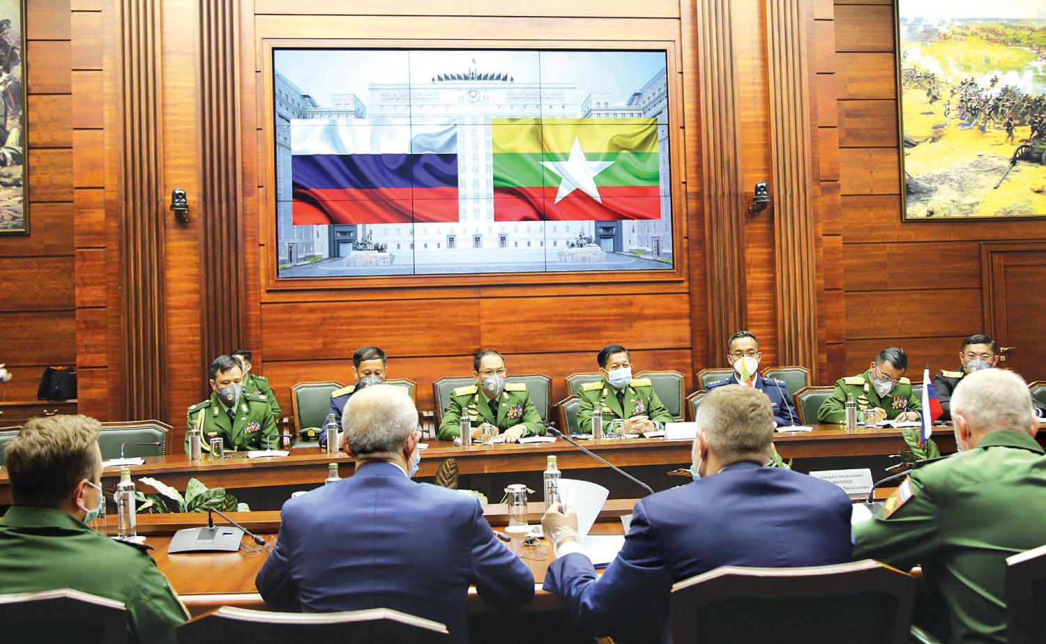 ရုရှားဖက်ဒရေးရှင်းနိုင်ငံ Victory Day of Great Patriotic War (၇၅) နှစ်မြောက် အထိမ်းအမှတ် စစ်ရေးပြအခမ်းအနားသို့ တက်ရောက်ရန် ရုရှားဖက်ဒရေးရှင်းနိုင်ငံ၌ ရောက်ရှိနေသည့် တပ်မတော်ကာကွယ်ရေးဦးစီးချုပ် ဗိုလ်ချုပ်မှူးကြီး မင်းအောင်လှိုင်နှင့်အဖွဲ့သည် ဇွန် ၂၃ ရက် ညနေပိုင်းတွင် ရုရှားဖက်ဒရေးရှင်းနိုင်ငံ၊ ကာကွယ်ရေးဝန်ကြီးဌာန ဒုတိယဝန်ကြီး Colonel General Alexander V.Fomin နှင့် ရုရှားဖက်ဒရေးရှင်းနိုင်ငံ ကာကွယ်ရေးဝန်ကြီးဌာနတွင် သွားရောက်တွေ့ဆုံ ဆွေးနွေးသည်။