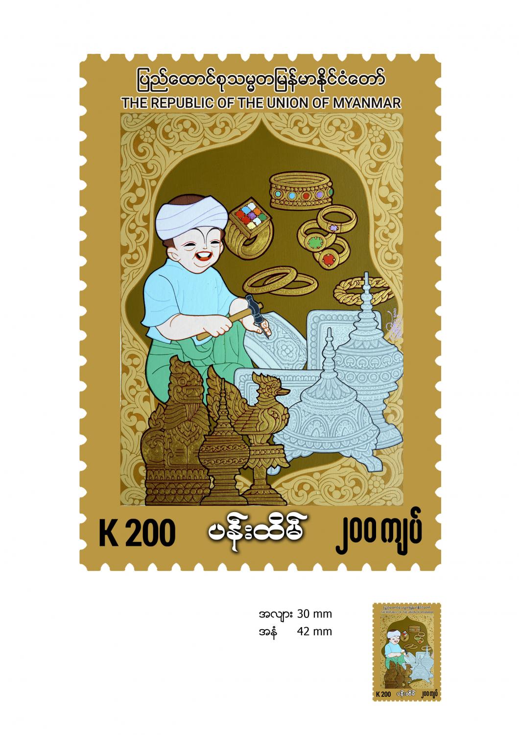 မြန်မာ့ယဉ်ကျေးမှု သုခုမ အနုပညာရပ်များကို မျိုးဆက်သစ် လူငယ်များအကြား ပိုမိုသိရှိ အလေးထားစေရန် ရည်ရွယ်၍ ပို့ဆောင်ရေးနှင့် ဆက်သွယ်ရေးဝန်ကြီးဌာန၊ မြန်မာ့စာတိုက်လုပ်ငန်းမှ သုခုမအနုပညာ ပန်းဆယ်မျိုးတွင် အပါအဝင်ဖြစ်သော ပန်းထိမ် အထိမ်းအမှတ် အထူးထုတ် စာပို့တံဆိပ်ခေါင်းသစ် (၂၀ဝ ကျပ် တန်) (၁)မျိုး အား ၂၀၂၀ ပြည့်နှစ်၊ သြဂုတ်(၇) ရက်၊ မြန်မာသက္ကရာဇ် ၁၃၈၂ ခုနှစ်၊ ဒုတိယ ဝါဆိုလဆုတ် (၄)ရက် (သောကြာနေ့)၊ နံနက် ၉ နာရီခွဲမှ စတင်၍ နေပြည်တော် ဗဟိုစာတိုက်ကြီး၊ ရန်ကုန် စာတိုက်ကြီး၊ မန္တလေး စာတိုက်ကြီးတို့နှင့် တိုင်းဒေသကြီး/ ပြည်နယ်များရှိ စာတိုက်များတွင် ရောင်းချပေးသွားမည် ဖြစ်သည်။
