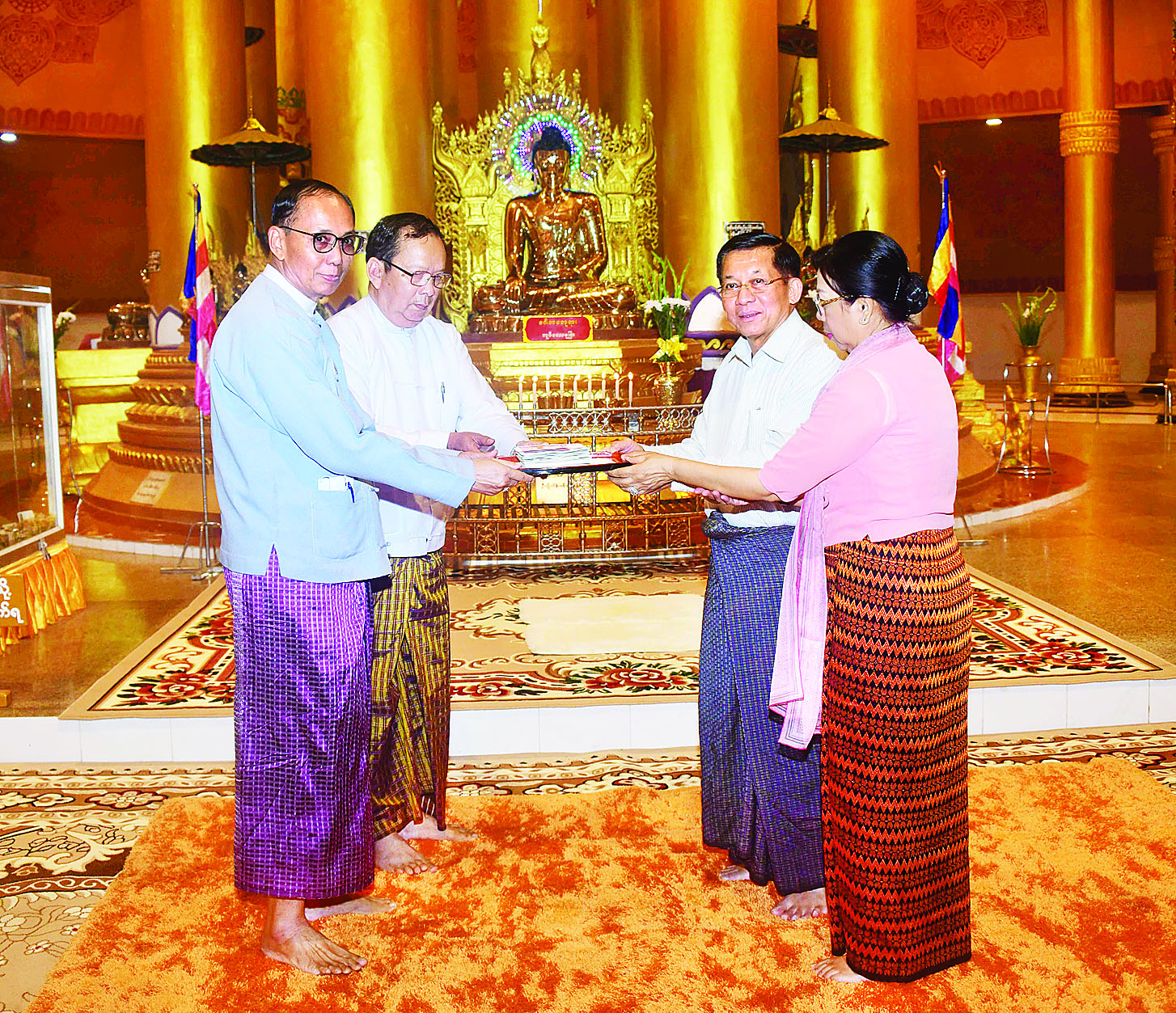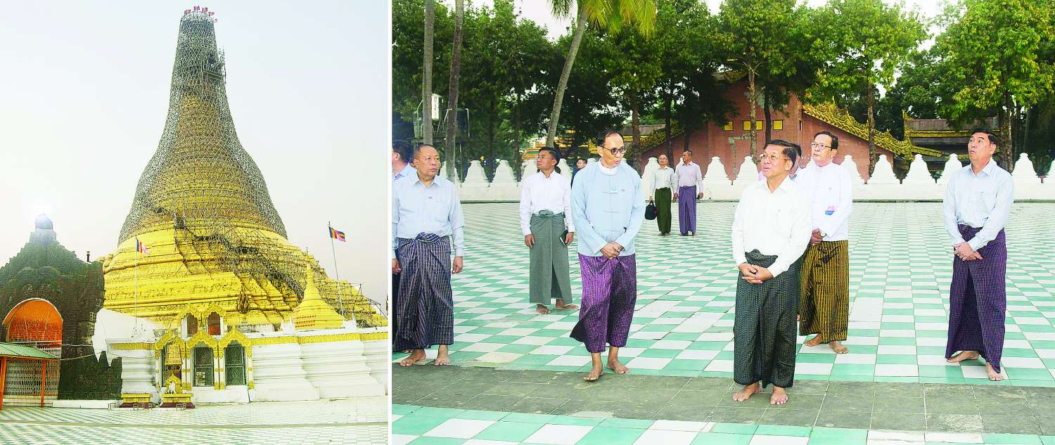 ထို့နောက် နိုင်ငံတော်စီမံအုပ်ချုပ်ရေးကောင်စီဥက္ကဋ္ဌ နိုင်ငံတော်ဝန်ကြီးချုပ်နှင့်ဇနီးတို့က စေတီတော်ကြီး ဘက်စုံပြုပြင်မွမ်းမံရန်အတွက် အလှူငွေများပေးအပ်လှူဒါန်းရာ ဂေါပကအဖွဲ့မှ တာဝန်ရှိသူများက လက်ခံရယူသည်။ ၎င်းနောက် နိုင်ငံတော်စီမံအုပ်ချုပ်ရေးကောင်စီဥက္ကဋ္ဌ နိုင်ငံတော်ဝန်ကြီးချုပ်သည် စေတီတော်ကြီးအတွင်းလှိုဏ် ပြုပြင်မွမ်းမံခြင်းလုပ်ငန်းများဆောင်ရွက်ခဲ့မှု မှတ်တမ်းဓာတ်ပုံများကို ကြည့်ရှုပြီး စေတီတော်ကြီးကို လက်ယာရစ်လှည့်လည်ဖူးမြော်ကြည်ညို၍ စေတီတော်ကြီး ရေရှည်တည်တံ့ခိုင်မြဲရေးအတွက် ထိန်းသိမ်းဆောင်ရွက်ရန်နှင့် အခြားလိုအပ်သည်များကို တာဝန်ရှိသူများအား မှာကြားသည်။
