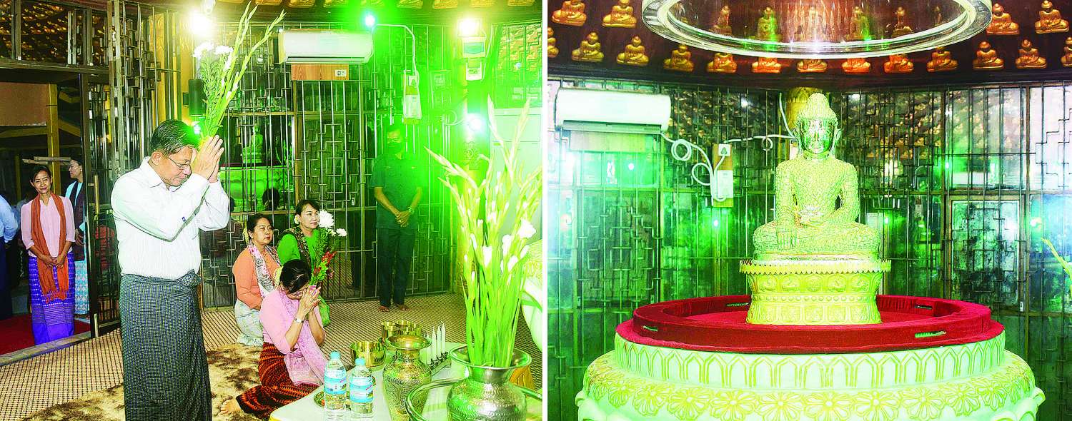 ဦးစွာ နိုင်ငံတော်စီမံအုပ်ချုပ်ရေးကောင်စီဥက္ကဋ္ဌ နိုင်ငံတော်ဝန်ကြီးချုပ်နှင့် ဇနီး၊ အဖွဲ့ဝင်များအား ဂေါပကအဖွဲ့ဝင်များက ကြိုဆိုနှုတ်ဆက်ကြသည်။ ယင်းနောက် နိုင်ငံတော်စီမံအုပ်ချုပ်ရေးကောင်စီဥက္ကဋ္ဌ နိုင်ငံတော်ဝန်ကြီးချုပ်နှင့် ဇနီး၊ အဖွဲ့ဝင်များသည် စေတီတော်မြတ်ကြီးအတွင်းရှိ ဗုဒ္ဓရုပ်ပွားတော်မြတ်အား ဖူးမြော်ကြည်ညိုကာ ပန်း၊ ရေချမ်း၊ ဆီမီးများ ကပ်လှူပူဇော်ပြီး နိုင်ငံတော်စီမံအုပ်ချုပ်ရေးကောင်စီဥက္ကဋ္ဌ နိုင်ငံတော်ဝန်ကြီးချုပ်က ဘုရားကြီးရှိ ဧည့်သည်တော်မှတ်တမ်းစာအုပ်တွင် မှတ်တမ်းတင်လက်မှတ်ရေးထိုးသည်။