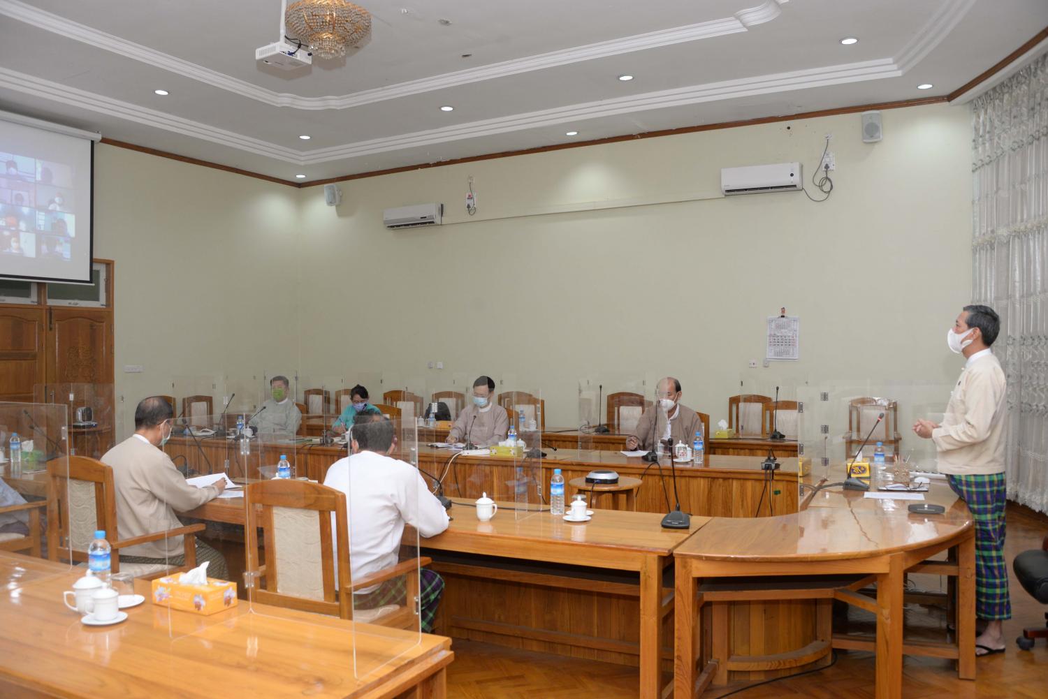 ကိုဗစ်-၁၉ ကပ်ရောဂါကာလအတွင်း အခြေခံပညာအထက်တန်းဆင့်ကျောင်းများ ပြန်လည်ဖွင့်လှစ်နိုင်ရေး ညှိနှိုင်းအစည်းအဝေးကို ယနေ့မွန်းလွဲ ၃ နာရီတွင် ပညာရေးဝန်ကြီးဌာန အစည်းအဝေးခန်းမ၌ Video Conferencing စနစ်ဖြင့် ကျင်းပသည်။