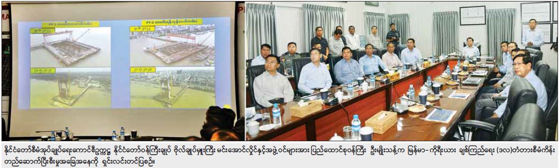 ရှင်းလင်းတင်ပြမှုများအပေါ် နိုင်ငံတော်စီမံအုပ်ချုပ်ရေးကောင်စီဥက္ကဋ္ဌ နိုင်ငံတော်ဝန်ကြီးချုပ်က စီမံကိန်းတွင် အသုံးပြုသည့် သံနှင့် သံမဏိပစ္စည်းများ ဆားငန်ရေဒဏ် ခံနိုင်စေရေးနှင့် စံချိန်စံညွှန်းကိုက်ညီစေရေး စနစ်တကျဆောင်ရွက်ရန်လိုကြောင်း၊ စီမံကိန်းအပိုင်းအလိုက် ဆောင်ရွက်၍ရသည့်လုပ်ငန်းများကို ကြိုတင်ပြီးစီးအောင် ဆောင်ရွက်ပြီး စီမံကိန်းတစ်ခုလုံး သတ်မှတ်ကာလအတွင်းပြီးစီးနိုင်ရေး ဆောင်ရွက်သွားရန်လိုကြောင်းဖြင့် ပြောကြားသည်။