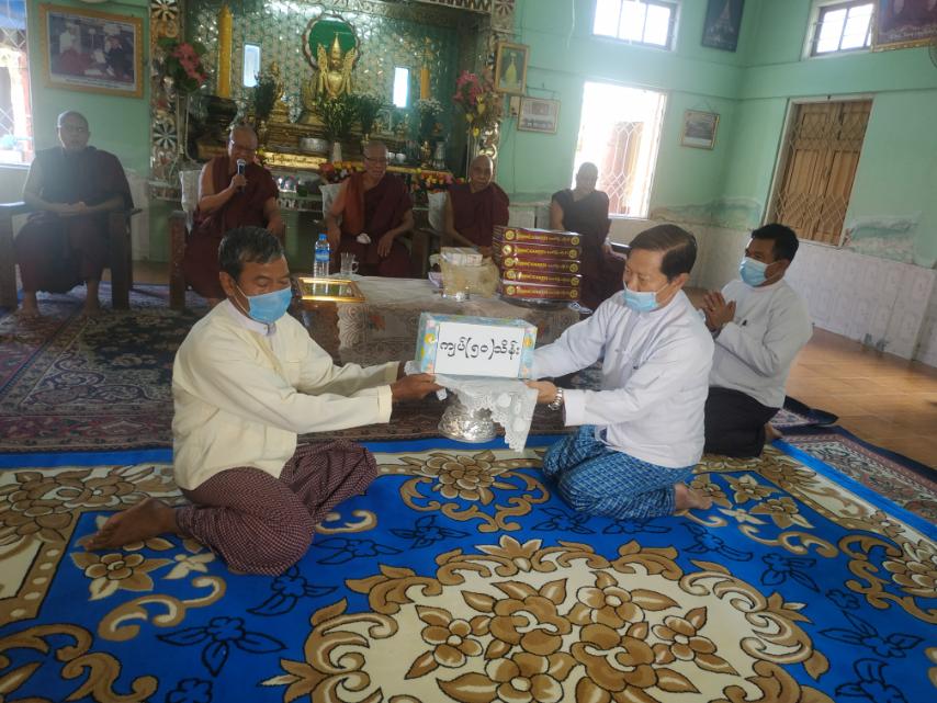 ဆက်လက်၍ ပြည်ထောင်စုဝန်ကြီးသည် ချမ်းမြသာစည်မြို့နယ် မဟာဓမ္မိကာရာမ ကျောင်းတိုက် နိုင်ငံတော်ဩဝါဒါစရိယ မိတ္ထီလာကျောင်းဆရာတော် ဘဒ္ဒန္တသုဇနပီယထံမှ ဩဝါဒခံယူပြီး ဝါဆိုသင်္ကန်းနှင့် ဆွမ်းပဒေသာပင် ငွေကျပ်သိန်း (၅၀) စိုက်ထူလှူဒါန်းသည်။ ယင်းနောက် ချမ်းမြသာစည်မြို့နယ် ဓမ္မဓရဝါဆိုကျောင်းတိုက် နာယကဆရာတော် ဘဒ္ဒန္တသုမင်္ဂလနှင့် ဓမ္မဓရ ဒေါက်တာအရှင်ကုမာရတို့ထံ ဝါဆိုသင်္ကန်းနှင့် ဆွမ်းပဒေသာပင် ငွေကျပ်သိန်း (၅၀) စိုက်ထူလှူဒါန်း ပြီး အနုမောဒနာတရားများ နာယူကြည်ညိုကာ လှူဒါန်းမှု အစုစုတို့အတွက် ရေစက်သွန်းလောင်း အမျှပေးဝေသည်။