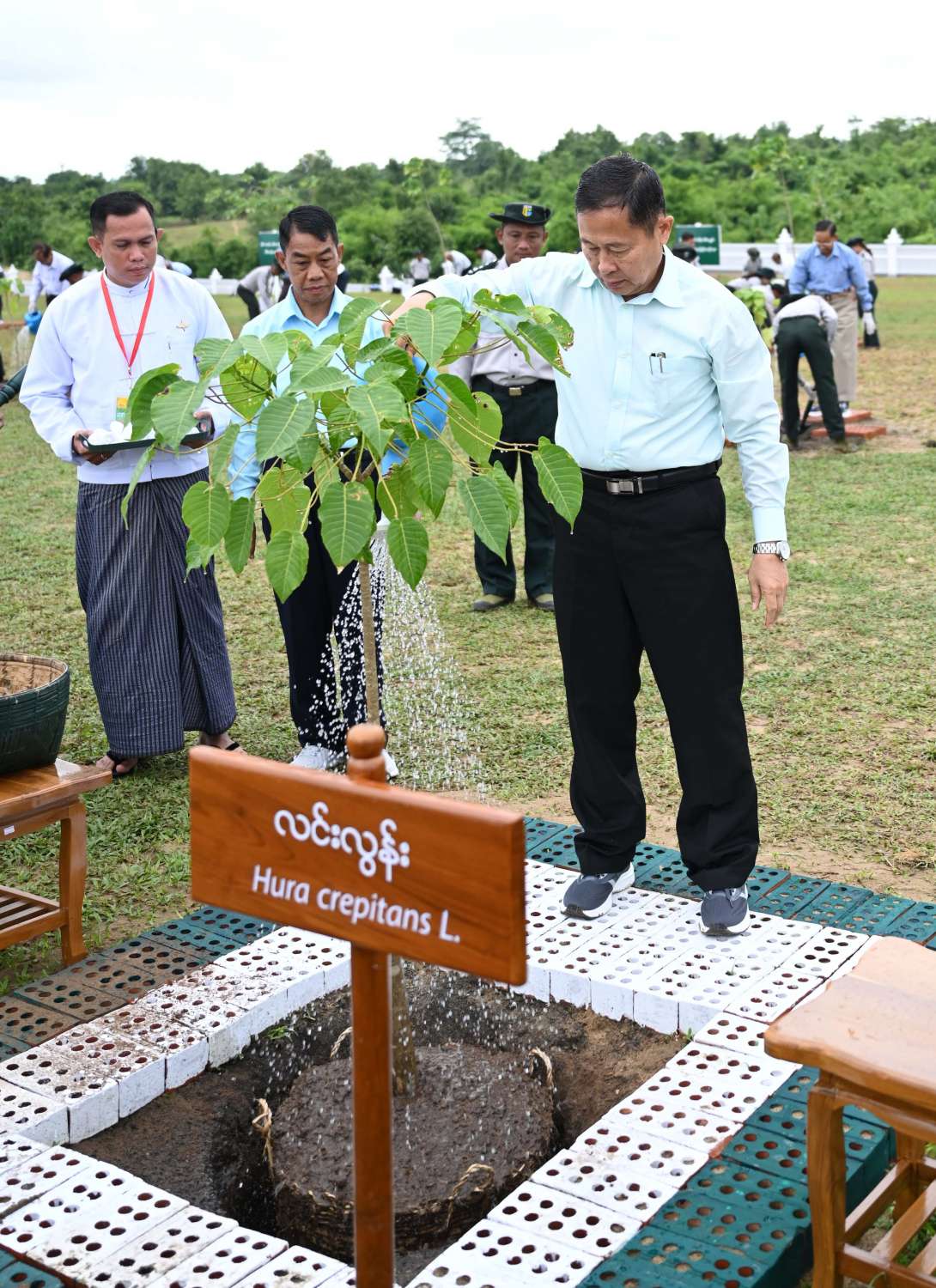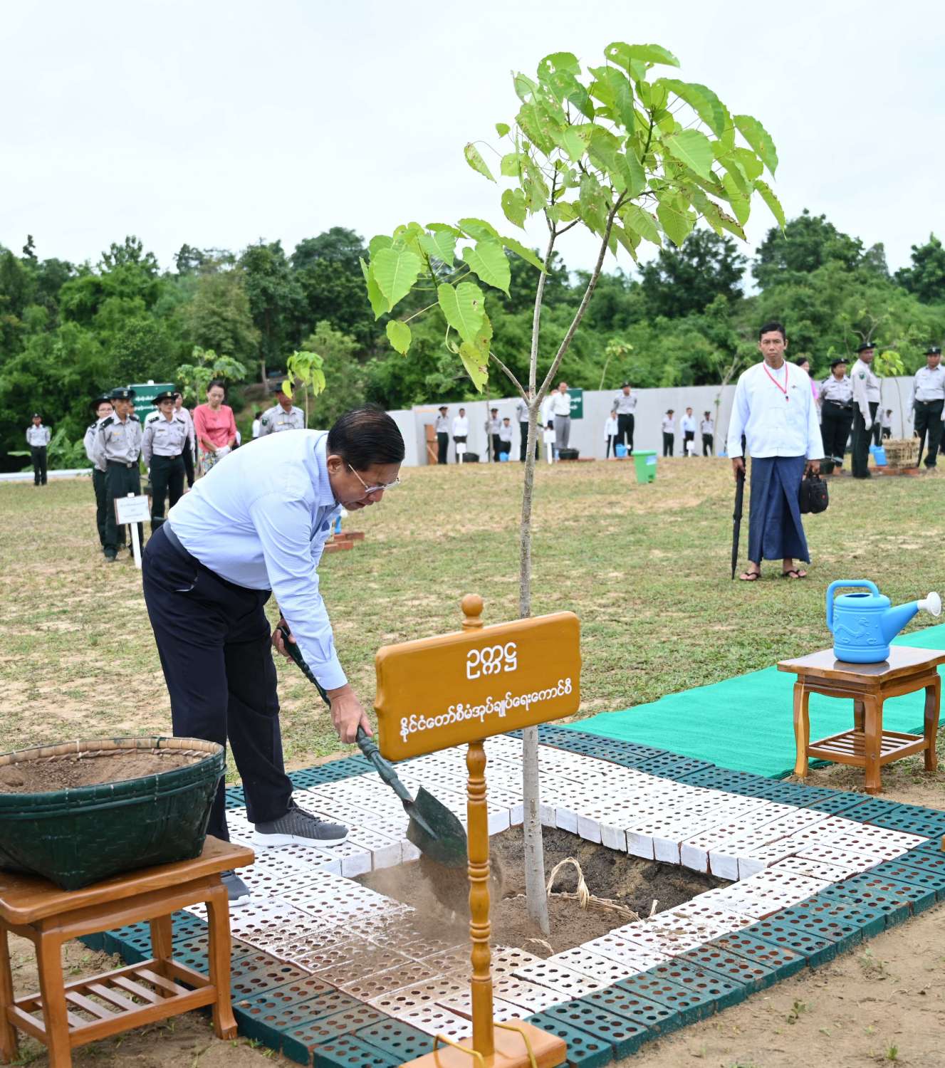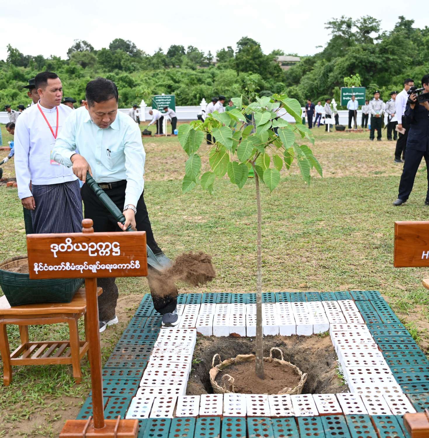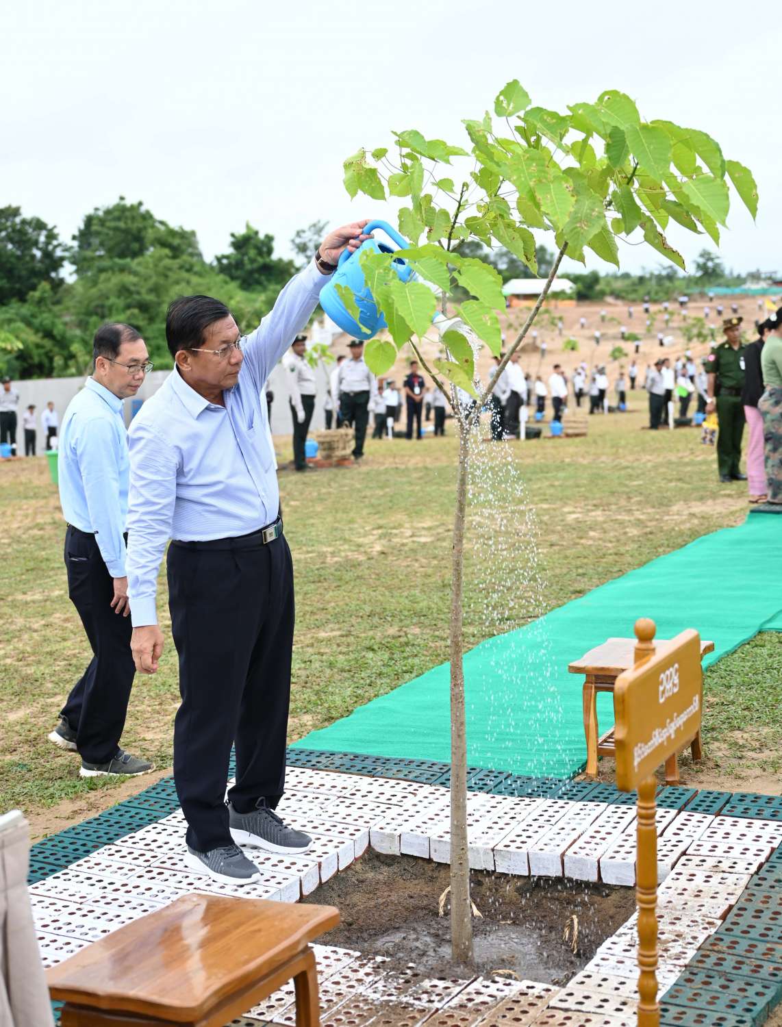 ယင်းနောက် အခမ်းအနားသို့ တက်ရောက်လာကြသည့် နိုင်ငံတော်စီမံအုပ်ချုပ်ရေးကောင်စီ ဒုတိယဥက္ကဋ္ဌ ဒုတိယဝန်ကြီးချုပ်နှင့်ဇနီး၊ ကောင်စီအတွင်းရေးမှူးနှင့်ဇနီး၊ တွဲဖက်အတွင်းရေးမှူးနှင့်ဇနီး၊ ကောင်စီအဖွဲ့ဝင်များနှင့်ဇနီးများ၊ ပြည်ထောင်စုအဆင့် ပုဂ္ဂိုလ်များနှင့် ပြည်ထောင်စုဝန်ကြီးများ၊ ဝန်ကြီးဌာနများမှ ဌာနဆိုင်ရာ အရာထမ်း၊ အမှုထမ်းများ၊ သစ်တောနှင့်ပတ်ဝန်းကျင်ဆိုင်ရာ တက္ကသိုလ်နှင့် အခြေခံပညာကျောင်းများမှ ကျောင်းသား၊ ကျောင်းသူများ၊ တာဝန်ရှိသူများသည် ပျိုးပင်များကို တစ်ပြိုင်တည်း စိုက်ပျိုးပေးကြသည်။