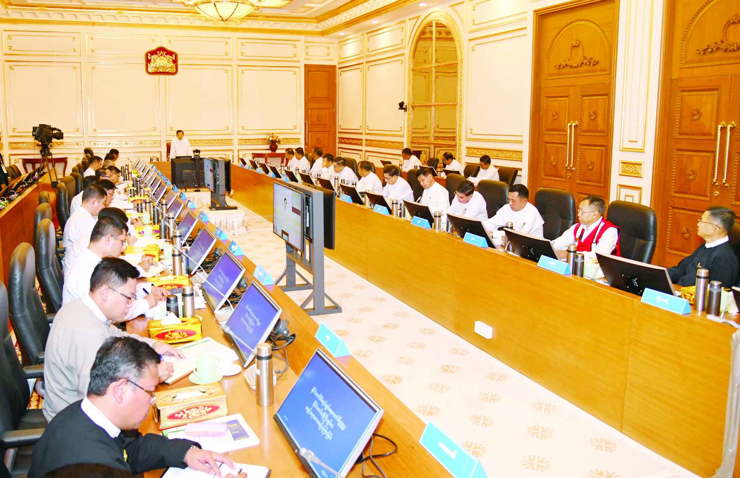 ယင်းနောက် တိုင်းဒေသကြီးနှင့်ပြည်နယ်ဝန်ကြီးချုပ်များ၊ ကိုယ်ပိုင်အုပ်ချုပ်ခွင့်ရ ဒေသနှင့် တိုင်းဥက္ကဋ္ဌများက ဒေသအလိုက်စိုက်ပျိုးမွေးမြူရေးလုပ်ငန်းများ ဆောင်ရွက်လျက်ရှိမှု၊ ကုန်ထုတ်လုပ်မှုလုပ်ငန်းများနှင့် ဒေသဖွံ့ဖြိုးတိုးတက်ရေးလုပ်ငန်းများ ဆောင်ရွက်လျက်ရှိမှု၊ ဒေသတည်ငြိမ်အေးချမ်းရေးလုပ်ငန်းများ ဆောင်ရွက်လျက်ရှိမှု၊ ကျောင်းသား၊ ကျောင်းသူများ ပညာသင်ကြားလျက်ရှိမှု အခြေအနေများကို ရှင်းလင်းတင်ပြသည်။