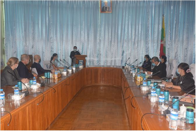 အခမ်းအနားတွင် အမေရိကန်သံရုံးမှ သံရုံးယာယီတာဝန်ခံ Mr. George Sibley က Distance Learning Capacity အတွက် အထောက်အကူပြုပစ္စည်းများ ထောက်ပံ့ရသည့် ရည်ရွယ်ချက်နှင့် ရှေ့ဆက်ပူးပေါင်း ဆောင်ရွက်မည့် လုပ်ငန်း အစီအစဉ်များကို ပြောကြားသည်။