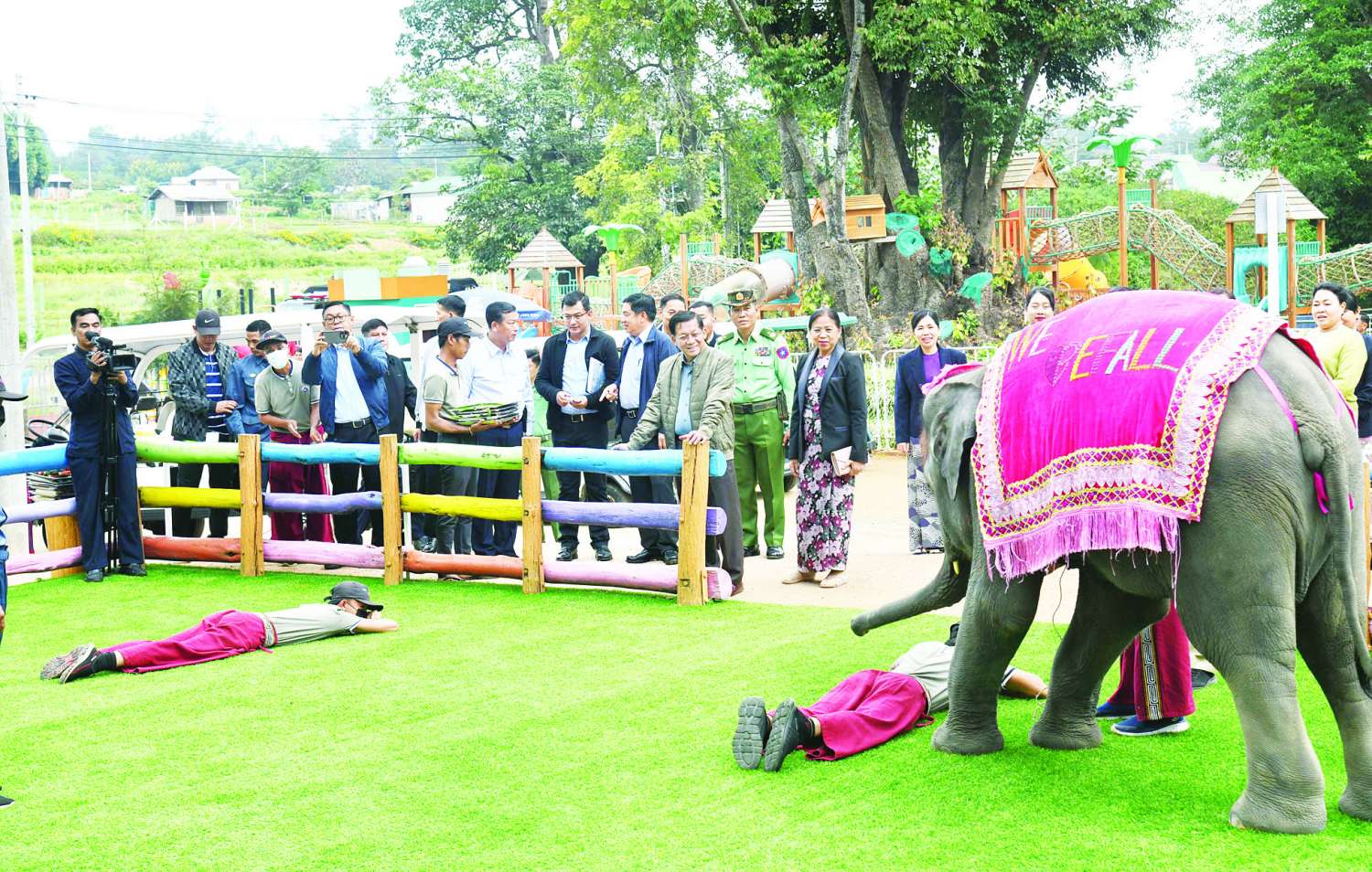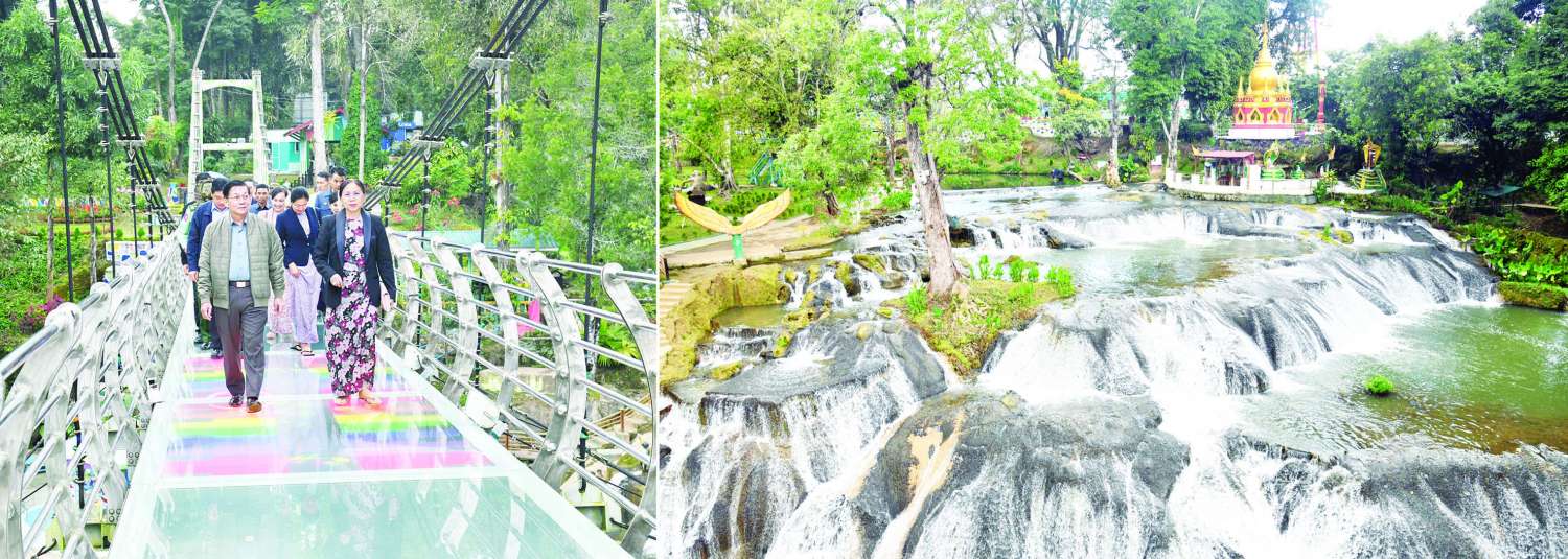 ယင်းနောက် နိုင်ငံတော်စီမံ အုပ်ချုပ်ရေးကောင်စီဥက္ကဋ္ဌ နိုင်ငံတော်ဝန်ကြီးချုပ်နှင့် အဖွဲ့ဝင်များသည် ပွဲကောက်ရေတံခွန်အပန်းဖြေစခန်း (B.E FALLS) အတွင်းရှိမှန်တံတားကို ဖြတ်သန်းပြီး ဆင်ကလေးများ၏ ကျွမ်းကျင်မှုနှင့် အလှပြပြကွက်များကို ကြည့်ရှုအားပေး၍ အစာကျွေးကြကာ Sky Cable Car ဖြင့် လိုက်ပါစီးနင်းပြီး ပွဲကောက်ရေတံခွန်အပန်းဖြေစခန်းအတွင်း လှည့်လည်ကြည့်ရှု စစ်ဆေးကြသည်။