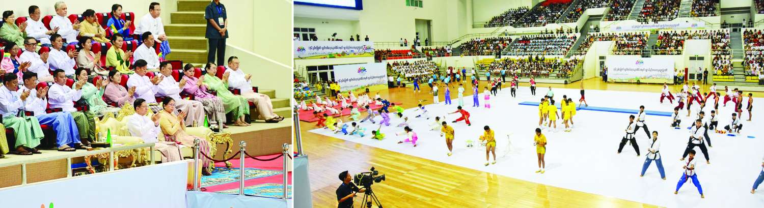 ထို့နောက် အားကစားနှင့်လူငယ်ရေးရာဝန်ကြီးဌာနမှ အားကစားမောင်မယ်များက အားကစားနည်းအလိုက် စွမ်းရည်ပြသခြင်း၊ ပြည်သူ့ဆက်ဆံရေးနှင့် စိတ်ဓာတ်စစ်ဆင်ရေးညွှန်ကြားရေးမှူးရုံး ကွပ်ကဲမှုအောက် မြဝတီတေးဂီတအဖွဲ့က “ရှေ့သို့လှမ်းချီ မြန်မာပြည်” တေးသီချင်း၊ အမှတ် (၁၁) အခြေခံပညာအထက်တန်းကျောင်း နေပြည်တော်မှ ကျောင်းသား ကျောင်းသူများက “ဘက်စုံပညာရည်တို့လှမ်းချီ” တေးသီချင်း၊ သာသနာရေးနှင့်ယဉ်ကျေးမှုဝန်ကြီးဌာန အနုပညာဦးစီးဌာနမှ “နတ်မြင်းပျံ” ယိမ်းအက၊ မြန်မာ့အသံနှင့်ရုပ်မြင်သံကြားမှ အနုပညာရှင်များနှင့် တိုင်းရင်းသား၊ တိုင်းရင်းသူများက “ပြည်ထောင်စုကြီး ထာဝရတည်တံ့စေသား” တေးသီချင်း၊ အဆိုတော်ယုန်လေးက “အနာဂတ် သူရဲကောင်း” တေးသီချင်း၊ ဝန်ကြီးဌာနအသီးသီးမှ ဝန်ထမ်းများနှင့် အမှတ် (၁) အခြေခံပညာအထက်တန်းကျောင်းမှ ကျောင်းသား ကျောင်းသူများက “ရတနာများစွာ” တေးအော်ပရာ၊ အနုပညာရှင်များက “တာဝန်ကိုယ်စီထိန်းကြမည်” တေးသီချင်း၊ မြန်မာနိုင်ငံဟာသပညာရှင်များ အစည်းအရုံးနှင့် အမှတ် (၁၄) အခြေခံပညာအထက်တန်းကျောင်းမှ ကျောင်းသား ကျောင်းသူများက “သျှောင်ပေစူး” တေးသရုပ်ဖော်အက၊ သာသနာရေးနှင့်ဝန်ကြီးဌာန အနုပညာဦးစီးဌာနက “ရှေ့သို့ချီမည်ပန်းတိုင်ဆီ” တေးသီချင်းနှင့် ဖျော်ဖြေရေးအဖွဲ့များက “ပြည့်ရတနာ” တေးသီချင်းတို့ဖြင့် သီဆိုကပြဖျော်ဖြေကြသည်။