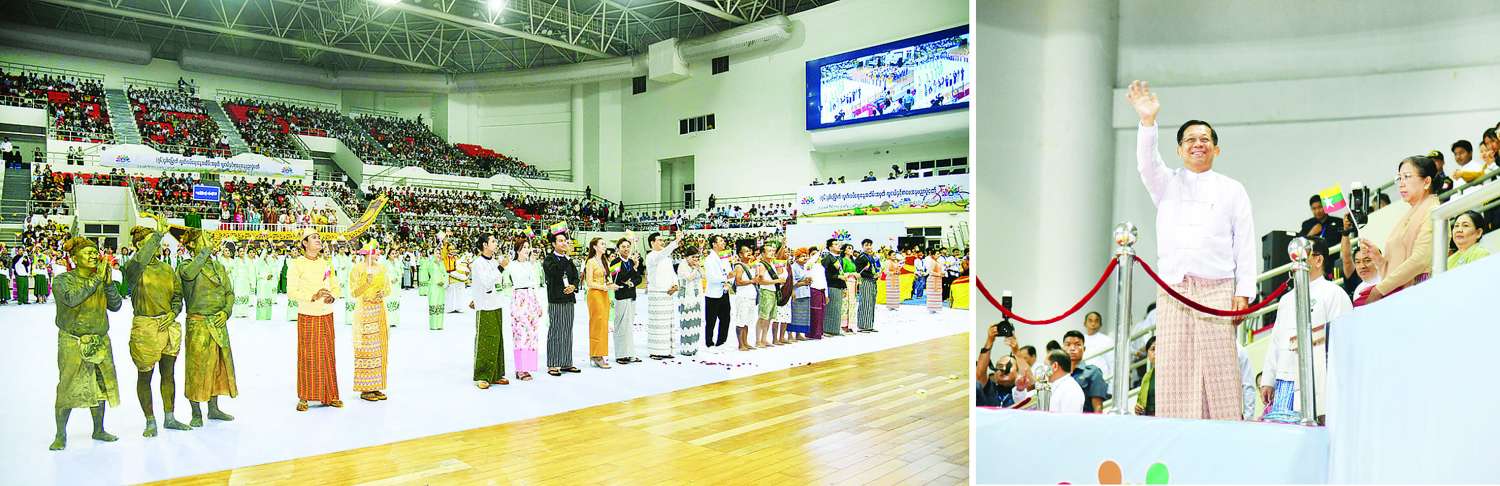 (၇၆) နှစ်မြောက် လွတ်လပ်ရေးနေ့အထိမ်းအမှတ် လူငယ်နှင့် စာပေအနုပညာပွဲတော် ဖွင့်ပွဲအခမ်းအနားကို ယနေ့နံနက်ပိုင်းတွင် နေပြည်တော်ရှိ ဝဏ္ဏသိဒ္ဓိအားကစားကွင်း (B) ရုံ၌ကျင်းပရာ နိုင်ငံတော်စီမံအုပ်ချုပ်ရေးကောင်စီဥက္ကဋ္ဌ နိုင်ငံတော်ဝန်ကြီးချုပ် ဗိုလ်ချုပ်မှူးကြီး မင်းအောင်လှိုင် တက်ရောက်ဖွင့်လှစ်ပေးပြီး အမှာစကားပြောကြားသည်။