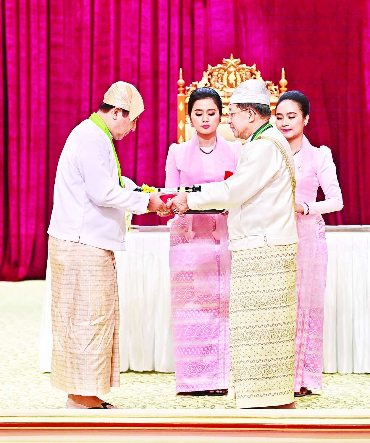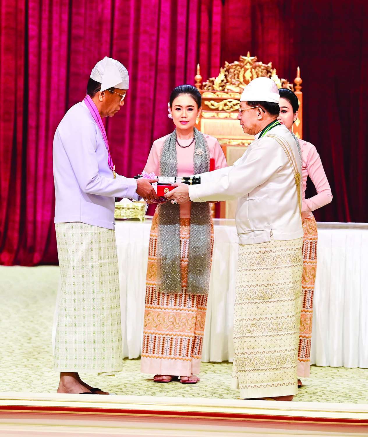 အခမ်းအနားသို့ နိုင်ငံတော်စီမံအုပ်ချုပ်ရေးကောင်စီဥက္ကဋ္ဌ နိုင်ငံတော်ဝန်ကြီးချုပ်၏ဇနီး ဒေါ်ကြူကြူလှ၊ နိုင်ငံတော်စီမံ အုပ်ချုပ်ရေးကောင်စီ ဒုတိယဥက္ကဋ္ဌ ဒုတိယဝန်ကြီးချုပ် ဒုတိယဗိုလ်ချုပ်မှူးကြီး သီရိပျံချီ မဟာသရေစည်သူ စိုးဝင်းနှင့်ဇနီး ဒေါ်သန်းသန်းနွယ်၊ ကောင်စီအတွင်းရေးမှူးနှင့်ဇနီး၊ တွဲဖက်အတွင်းရေးမှူးနှင့်ဇနီး၊ နိုင်ငံတော်စီမံအုပ်ချုပ်ရေး ကောင်စီဝင်များနှင့်ဇနီးများ၊ ပြည်ထောင်စုအဆင့် ပုဂ္ဂိုလ်များ၊ ပြည်ထောင်စုဝန်ကြီးများနှင့်ဇနီးများ၊ ကာကွယ်ရေးဦးစီးချုပ်ရုံးမှ အဆင့်မြင့် တပ်မတော်အရာရှိကြီးများ၊ ဂုဏ်ထူးဆောင်ဘွဲ့ ရရှိကြသည့် ပုဂ္ဂိုလ်များနှင့်မိသားစုဝင်များ တက်ရောက်ကြသည်။