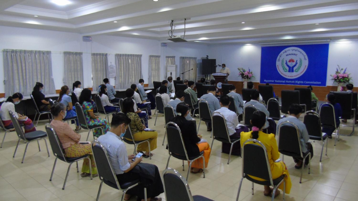 အခမ်းအနားတွင် မြန်မာနိုင်ငံ အမျိုးသား လူ့အခွင့်အရေး ကော်မရှင် ဥက္ကဋ္ဌ ဦးလှမြင့်က အဖွင့်အမှာစကား ပြောကြားသည်။ အခမ်းအနားသို့ ကော်မရှင်အဖွဲ့ဝင်များ၊ ကော်မရှင်ရုံး ညွှန်ကြားရေးမှူးချုပ်နှင့် ဌာနတာဝန်ခံများ၊ သင်တန်းသား/ သင်တန်းသူ အရာထမ်း ၂၇ ဦး တက်ရောက်ကြသည်။