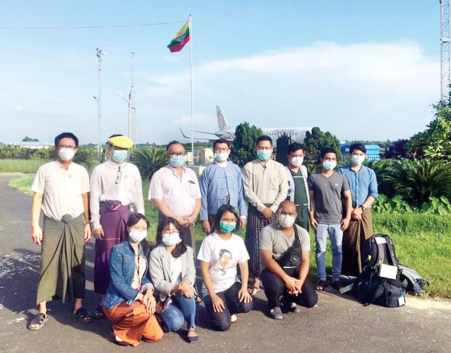ရခိုင်ပြည်နယ် စစ်တွေ၊ ပေါက်တောနှင့် မာန်အောင်မြို့တို့တွင် ကိုဗစ် - ၁၉ ရောဂါ ကာကွယ်၊ ကုသ၊ ထိန်းချုပ်ရေး လုပ်ငန်းများ၌ “မိမိဆန္ဒ အလျောက်” တွဲဖက်တာဝန်ထမ်းဆောင်မည့် ဆရာဝန်နှင့် သူနာပြုများသည် ယနေ့နံနက်ပိုင်းတွင် မြန်မာအမျိုးသား ပိုင် လေကြောင်းလိုင်းမှ အထူးလေယာဉ် ဖြင့် စစ်တွေမြို့သို့ ရောက်ရှိကြသည်။