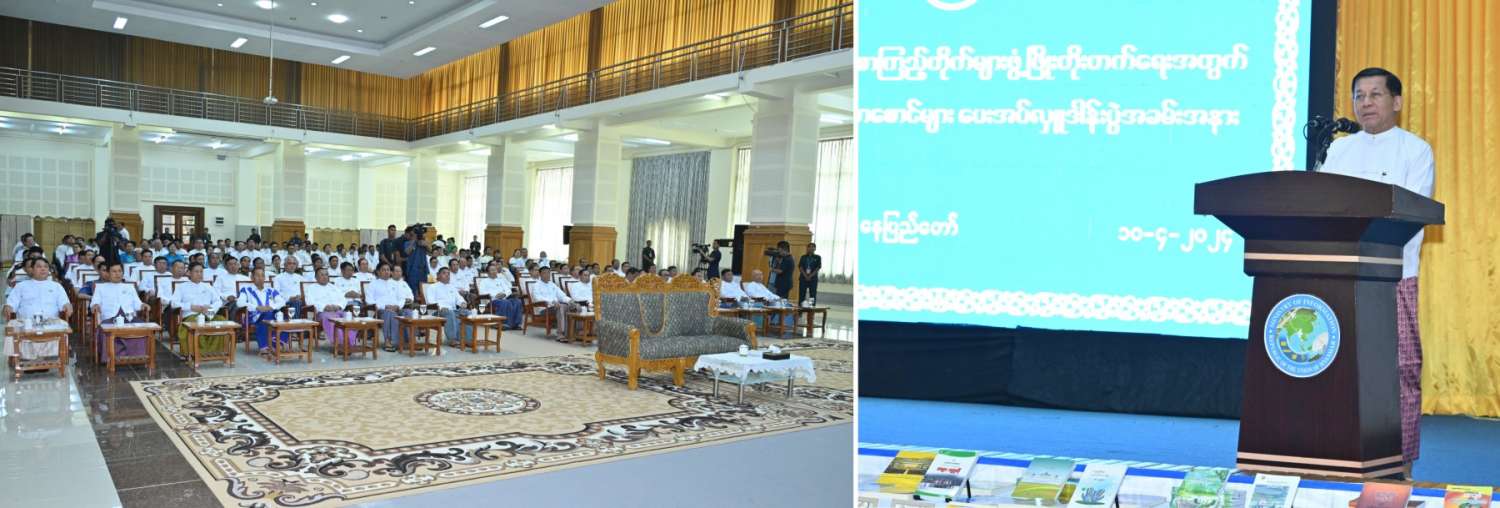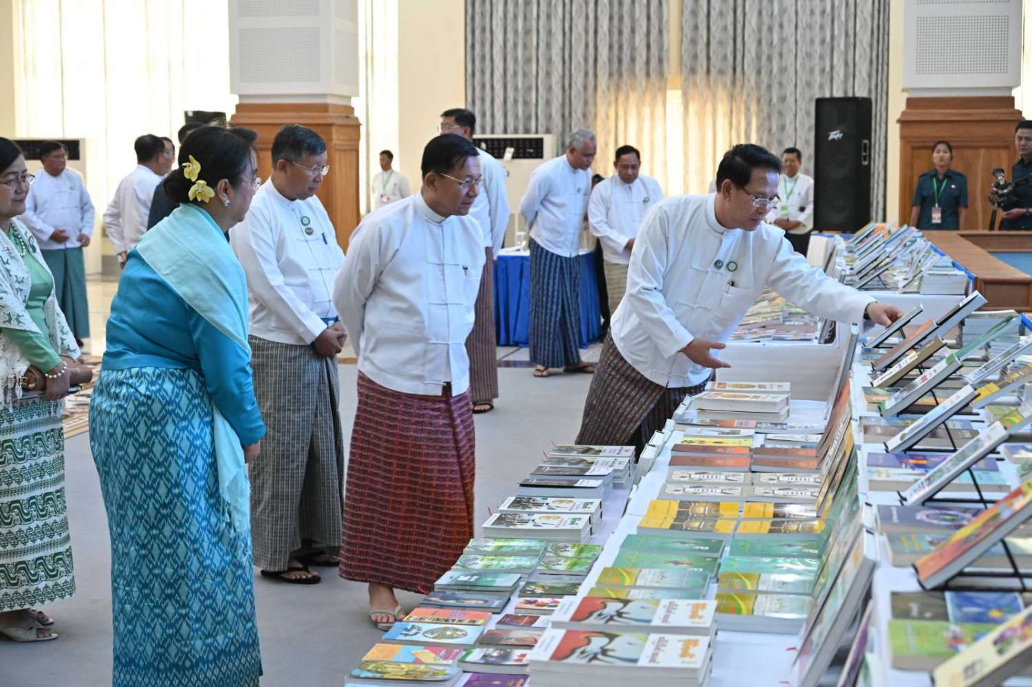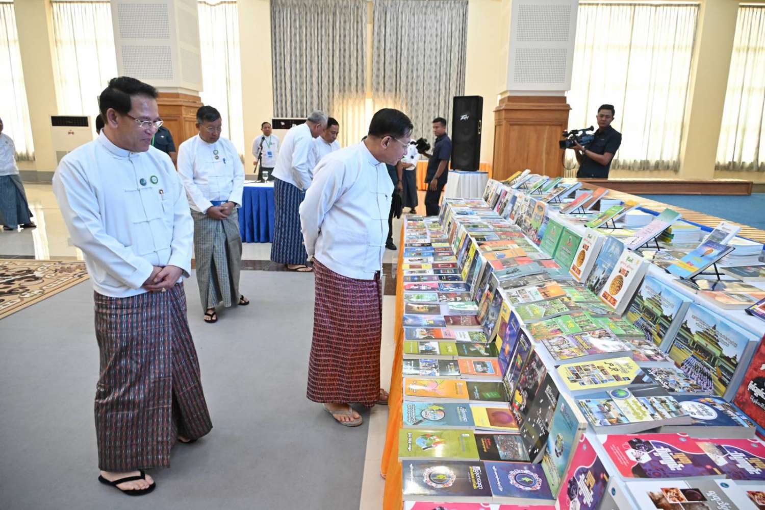 မြန်မာနိုင်ငံတစ်ဝန်းလုံးရှိ စာကြည့်တိုက်များ ဖွံ့ဖြိုးတိုးတက်ရေးအတွက် အလှူငွေနှင့် စာအုပ်စာစောင်များ ပေးအပ်လှူဒါန်းပွဲအခမ်းအနားကို ယနေ့နံနက်ပိုင်းတွင် နေပြည်တော်ရှိ အမျိုးသားစာကြည့်တိုက်၌ ကျင်းပပြုလုပ်ရာ နိုင်ငံတော်စီမံအုပ်ချုပ်ရေးကောင်စီဥက္ကဋ္ဌ နိုင်ငံတော်ဝန်ကြီးချုပ် ဗိုလ်ချုပ်မှူးကြီး မင်းအောင်လှိုင် တက်ရောက်သည်။