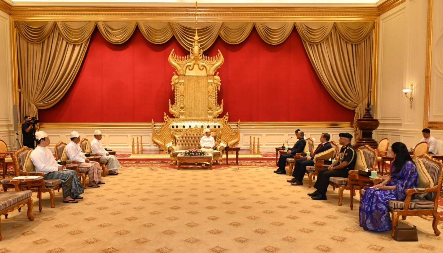 တွေ့ဆုံပွဲအပြီးတွင် နိုင်ငံတော်စီမံအုပ်ချုပ်ရေးကောင်စီဥက္ကဋ္ဌ နိုင်ငံတော်ဝန်ကြီးချုပ်နှင့် မြန်မာနိုင်ငံဆိုင်ရာ အိန္ဒိယနိုင်ငံသံအမတ်ကြီးတို့သည် စုပေါင်းမှတ်တမ်းတင်ဓာတ်ပုံရိုက်ကြသည်။