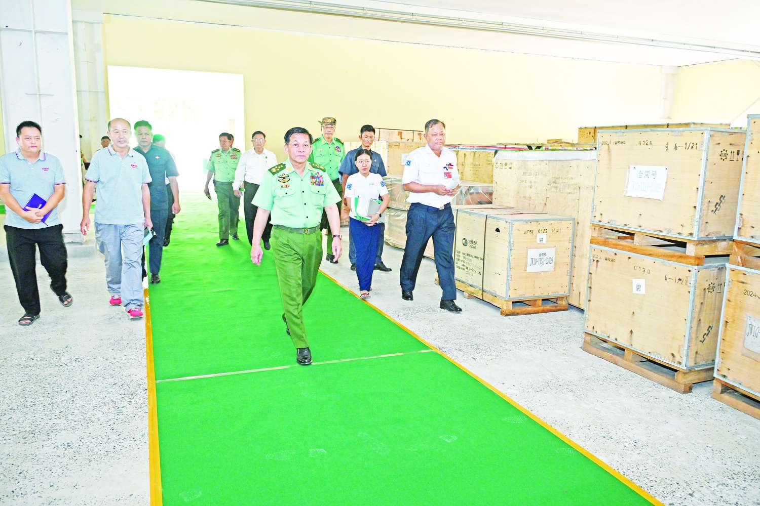 ယင်းနောက် နိုင်ငံတော်စီမံအုပ်ချုပ်ရေးကောင်စီဥက္ကဋ္ဌ တပ်မတော်ကာကွယ်ရေးဦးစီးချုပ်သည် ခင်းကျင်းပြထားသော စက်ရုံမှထုတ်လုပ်ထားသည့် ယူနီဖောင်းပိတ်စများနှင့် ချည်ထည်များ၏ အရည်အသွေးများအား ကြည့်ရှုစစ်ဆေးကာ တာဝန်ရှိသူများ၏ တင်ပြချက်များအပေါ် ချည်ထည်များ၏ အရည်အသွေးအား ဆက်လက်ထိန်းသိမ်းသွားရန်၊ ဈေးကွက်လိုအပ်ချက်အပေါ်မူတည်၍ တိုးမြှင့်ထုတ်လုပ်နိုင်ရေး ဆောင်ရွက်သွားရန်နှင့် အခြားလိုအပ်သည်များကို မှာကြားသည်။