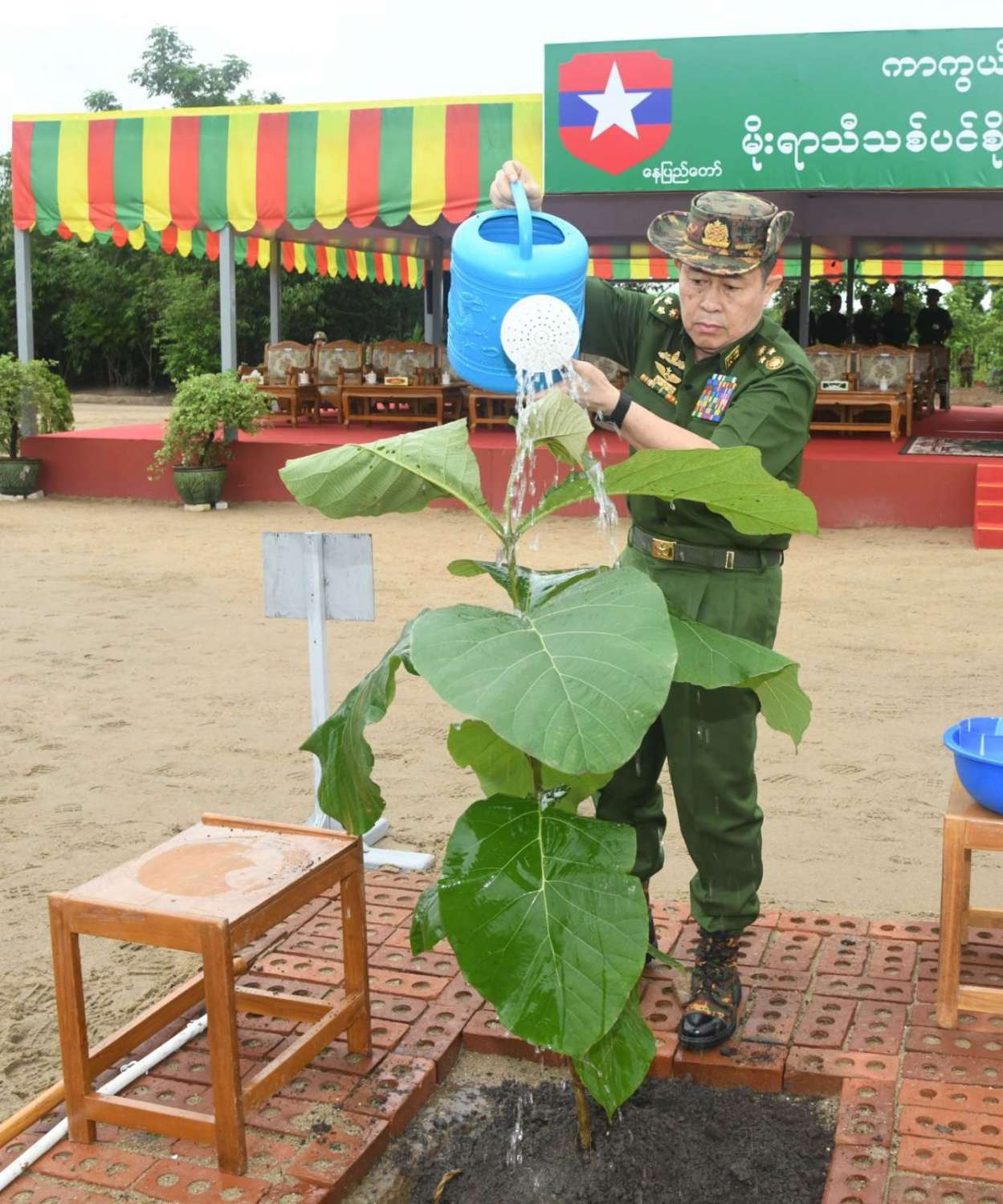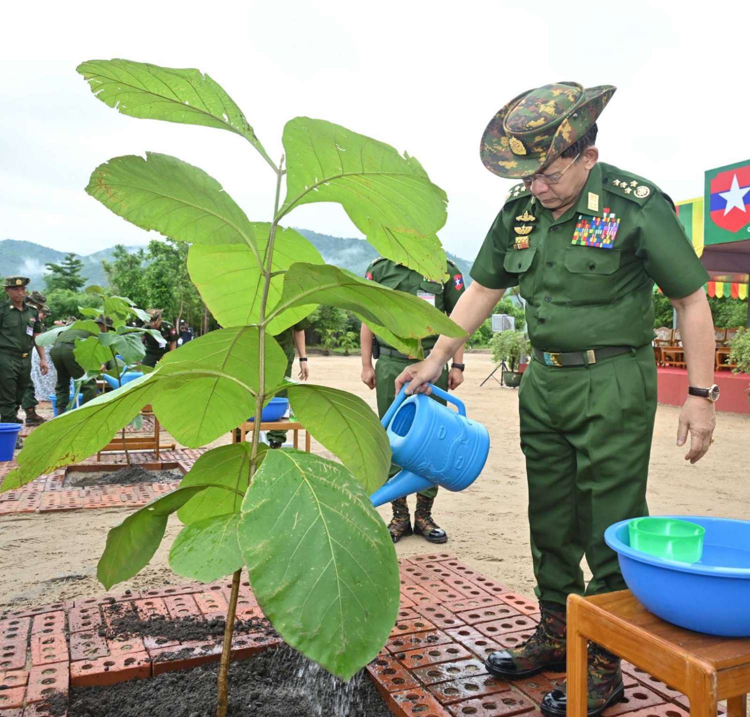 ဦးစွာ နိုင်ငံတော်စီမံအုပ်ချုပ်ရေးကောင်စီဥက္ကဋ္ဌ တပ်မတော်ကာကွယ်ရေးဦးစီးချုပ်နှင့် ဇနီးတို့သည် နိုင်ငံတော်စီမံအုပ်ချုပ်ရေးကောင်စီဒုတိယဥက္ကဋ္ဌ ဒုတိယတပ်မတော်ကာကွယ်ရေးဦးစီးချုပ် ကာကွယ်ရေးဦးစီးချုပ် (ကြည်း)၊ ညှိနှိုင်းကွပ်ကဲရေးမှူး (ကြည်း၊ ရေ၊ လေ)နှင့်ဇနီး၊ ကာကွယ်ရေးဦးစီးချုပ်(လေ)၊ ကာကွယ်ရေးဦးစီးချုပ်ရုံးမှ တပ်မတော်အရာရှိကြီးများနှင့် ဇနီးများ၊ အခမ်းအနားတက်ရောက်လာကြသည့် အရာရှိ၊ စစ်သည် မိသားစုများနှင့်အတူ သတ်မှတ်နေရာအသီးသီးတွင် သစ်ပင်များကို အတူတကွစုပေါင်းစိုက်ပျိုးကြသည်။ ထို့နောက် နိုင်ငံတော်စီမံအုပ်ချုပ်ရေး ကောင်စီဥက္ကဋ္ဌ တပ်မတော်ကာကွယ်ရေးဦးစီးချုပ်နှင့် ဇနီး၊ အဖွဲ့ဝင်များသည် အရာရှိ၊ စစ်သည် မိသားစုများ၏ စုပေါင်းသစ်ပင်စိုက်ပျိုးနေမှုအား လှည့်လည်ကြည့်ရှုအားပေးကြသည်။