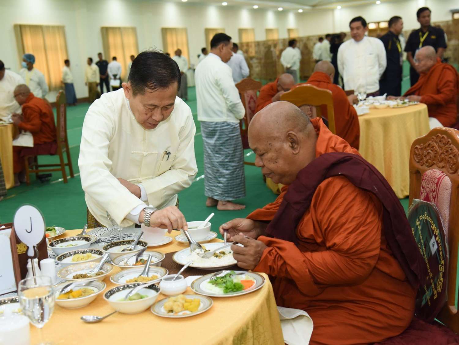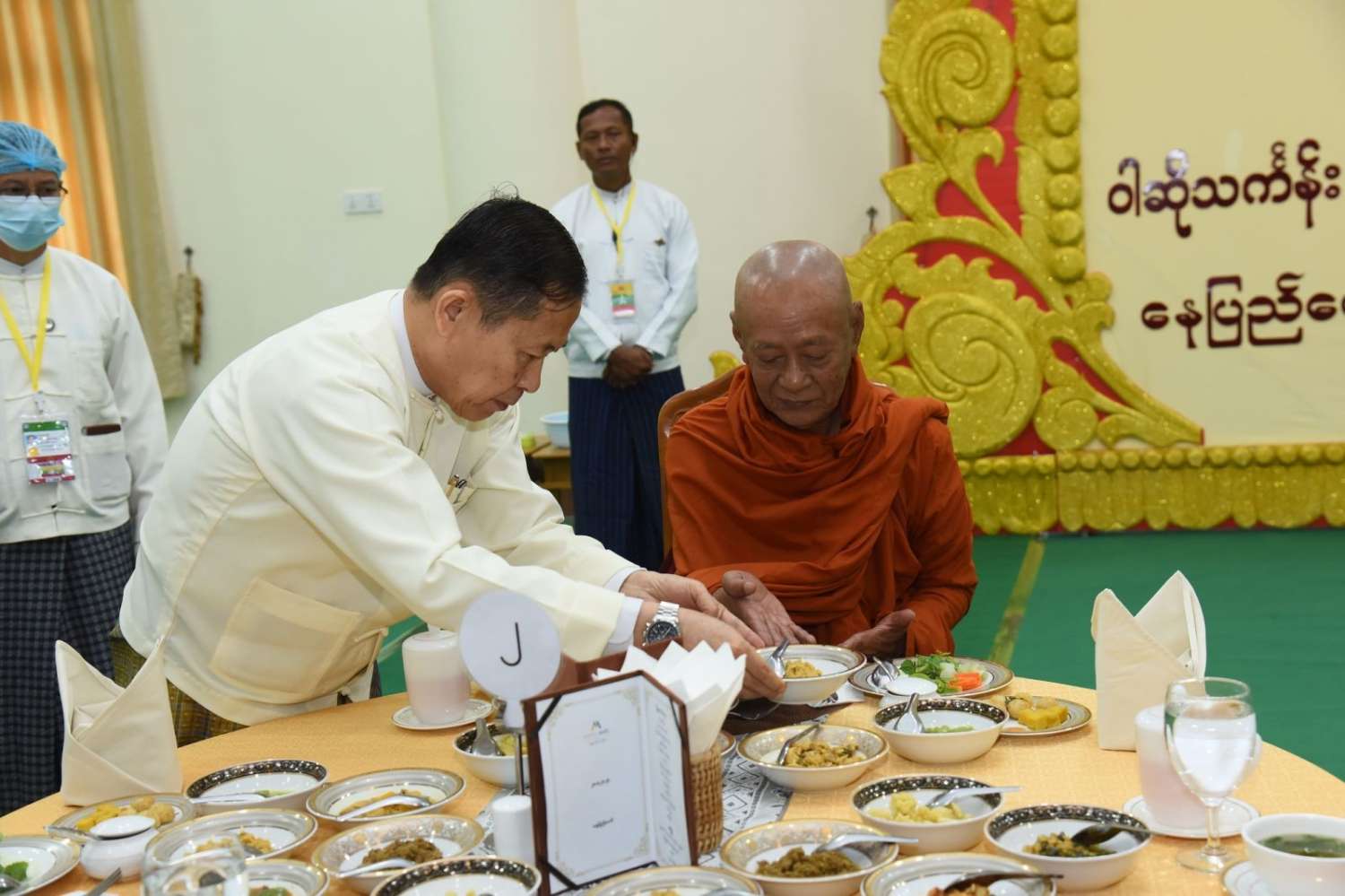 အခမ်းအနားအပြီးတွင် နိုင်ငံတော်စီမံအုပ်ချုပ်ရေးကောင်စီဥက္ကဋ္ဌ နိုင်ငံတော်ဝန်ကြီးချုပ်နှင့် အခမ်းအနားတက်ရောက်လာကြသူများသည် ဆရာတော်၊ သံဃာတော်များအား နေ့ဆွမ်းဆက်ကပ်လှူဒါန်းကြသည်။