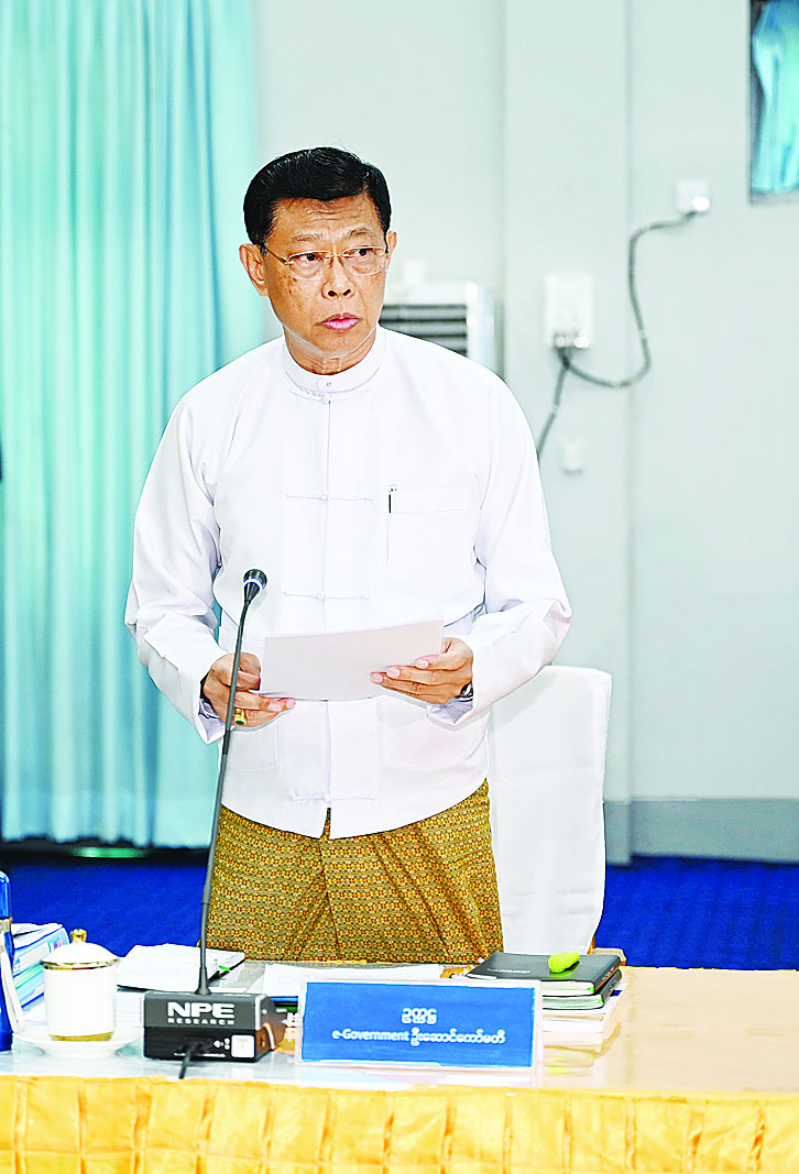 ထို့နောက် e-Government ဦးဆောင်ကော်မတီဥက္ကဋ္ဌ ပြည်ထောင်စုဝန်ကြီး ဗိုလ်ချုပ်ကြီး မြထွန်းဦးက မြန်မာနိုင်ငံတွင် e-Government စတင်ဆောင်ရွက်ခဲ့သည့်အခြေအနေများ၊ e-Government စနစ်ဖွံ့ဖြိုးတိုးတက်ရေး၊ အင်တာနက်ဝန်ဆောင်မှုများတိုးချဲ့နိုင်ရေး၊ ဝန်ကြီးဌာနများအချင်းချင်းချိတ်ဆက်အသုံးပြုနိုင်သည့် EDMS စနစ်များ ချိတ်ဆက်နိုင်ရေးဆောင်ရွက်ခဲ့မှု၊ မိုဘိုင်းဖုန်းများသုံးစွဲမှု ဖွံ့ဖြိုးတိုးတက်ရေးဆောင်ရွက်ခဲ့မှု၊ e-Government စနစ်ပိုမိုတိုးတက်ကောင်းမွန်စေရေးအတွက် e-Government ဦးဆောင်ကော်မတီကို အမျိုးသားအဆင့်ဖွဲ့စည်းဆောင်ရွက်ခဲ့မှု၊ e-Government စနစ်တိုးတက်ရေးအတွက် Myanmar e-Government Master Plan 2030 ကိုရေးဆွဲဆောင်ရွက်ခဲ့မှု၊ နည်းပညာကျွမ်းကျင်သည့် ဝန်ထမ်းများ လေ့ကျင့်မွေးထုတ်ပေးလျက်ရှိမှု၊ သတင်းအချက်အလက်များလုံခြုံမှုရှိစေရေး ဆောင်ရွက်ခဲ့မှုနှင့် မြန်မာယူနီကုတ်စနစ်ကိုဆောင်ရွက်ခဲ့မှု၊ ဆိုက်ဘာလုံခြုံရေးဥပဒေပြဌာန်းဆောင်ရွက်ခဲ့မှု၊ e-Government စနစ်ဖွံ့ဖြိုးတိုးတက်ရေးအတွက် ဆက်လက်အကောင်အထည်ဖော် ဆောင်ရွက်လျက်ရှိမှု၊ ပြည်သူများအား ကောင်းမွန်ပြည့်စုံသည့် ဒစ်ဂျစ်တယ်ဝန်ဆောင်မှုများ ပေးနိုင်ရေးဆောင်ရွက်လျက်ရှိမှု၊ သတင်းအချက်အလက်များ အချိန်နှင့်တစ်ပြေးညီရရှိစေရေး ဆောင်ရွက်ပေးလျက်ရှိမှု၊ နိုင်ငံ၏အုပ်ချုပ်ရေး၊ လူမှုရေး၊ စီးပွားရေးနှင့်ပြည်သူများ၏ လူမှုစီးပွားဘဝများဖွံ့ဖြိုးတိုးတက်စေရေး e-Government ဦးဆောင်ကော်မတီအနေဖြင့် ဆက်လက်ဆောင်ရွက်သွားမည့် အခြေအနေများကို ရှင်းလင်းတင်ပြသည်။