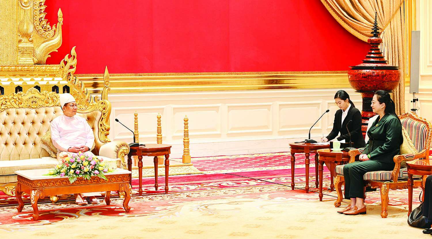 နိုင်ငံတော်စီမံအုပ်ချုပ်ရေးကောင်စီဥက္ကဋ္ဌ နိုင်ငံတော်ဝန်ကြီးချုပ် ဗိုလ်ချုပ်မှူးကြီးမင်းအောင်လှိုင်ထံ မြန်မာနိုင်ငံဆိုင်ရာ တရုတ်ပြည်သူ့သမ္မတနိုင်ငံ သံအမတ်ကြီးအဖြစ်ခန့်အပ်ရန်သဘောတူညီပြီးဖြစ်သော သံအမတ်ကြီး H.E. Ms. Ma Jia သည် ယနေ့နံနက် ၁၀ နာရီတွင် နေပြည်တော်ရှိ နိုင်ငံတော်စီမံအုပ်ချုပ်ရေးကောင်စီဥက္ကဋ္ဌရုံး၊ သံတမန်ဆောင်ဧည့်ခန်းမ၌ ၎င်း၏သံအမတ်ခန့်အပ်လွှာကို ပေးအပ်သည်။