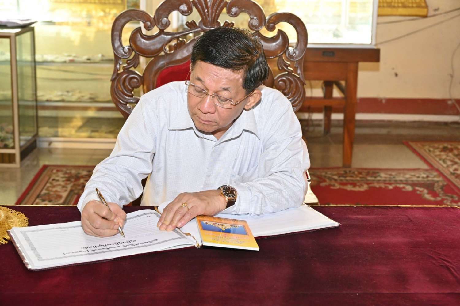နိုင်ငံတော်စီမံအုပ်ချုပ်ရေးကောင်စီဥက္ကဋ္ဌ နိုင်ငံတော်ဝန်ကြီးချုပ် ဗိုလ်ချုပ်မှူးကြီး မင်းအောင်လှိုင်သည် ဇနီး ဒေါ်ကြူကြူလှ၊ ခရီးစဉ်တွင် လိုက်ပါလာသည့် အဖွဲ့ဝင်များနှင့် တာဝန်ရှိသူများလိုက်ပါ၍ ယနေ့နံနက်ပိုင်းတွင် မန္တလေးတိုင်းဒေသကြီး၊ မန္တလေးခရိုင်၊ အမရပူရမြို့နယ်၊ ရှားတောလေးကျေးရွာအနီးရှိ မဟာဓမ္မရံသီကုန်းတော်မြတ်၌ တည်ထားကိုးကွယ်သည့် စွယ်တော်မြတ်စေတီတော်(မန္တလေး)အား သွားရောက်ဖူးမြော်ကြည်ညိုသည်။