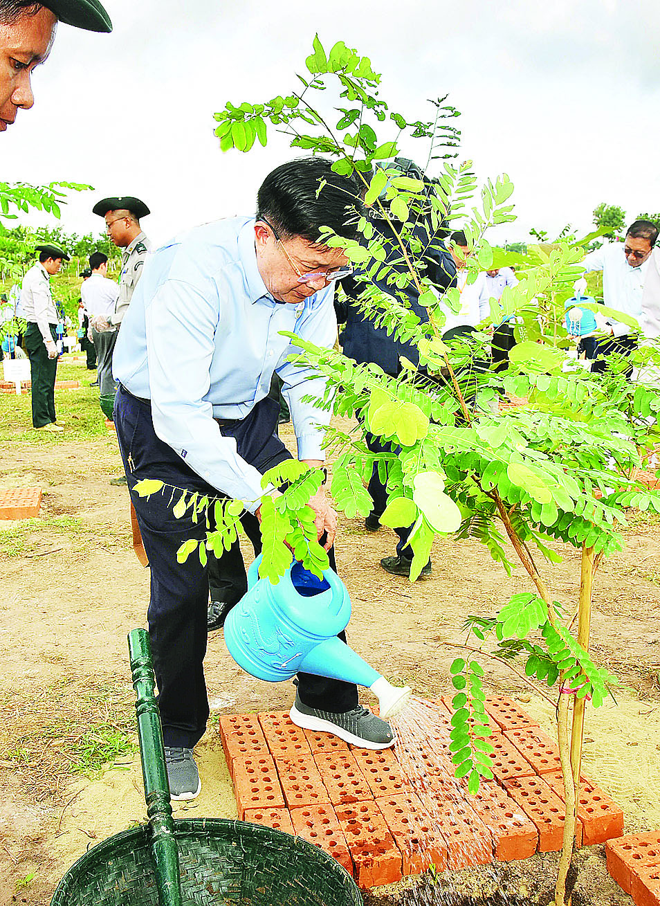 ယနေ့ပြုလုပ်သည့် သစ်ပင်စိုက်ပျိုးပွဲတွင် သစ်မျိုး ၁၅ မျိုး၊ အပင်ပေါင်း ၃၀၀၀ ကို စိုက်ပျိုးခဲ့ခြင်းဖြစ်ကြောင်း၊ နိုင်ငံတော်စီမံအုပ်ချုပ်ရေးကောင်စီ တာဝန်ယူခဲ့သည့် ၂၀၂၁ ခုနှစ်မှ ယနေ့အထိ နိုင်ငံအဆင့်သစ်ပင်စိုက်ပွဲတော် ၁၀ ကြိမ်၊ စိုက်ပင်ပေါင်း ၁၇၆၇၇ ပင်၊ နိုင်ငံနှင့်အဝန်းသစ်ပင်စိုက်ပွဲတော် ၁၅၈၄ ကြိမ်၊ စိုက်ပင်ပေါင်း ၁ ဒသမ ၁၃၈ သန်းကျော်ကို စိုက်ပျိုးခဲ့ပြီးဖြစ်ကြောင်း၊ နိုင်ငံတော်အနေဖြင့် နှစ်စဉ်သစ်ပင်စိုက်ပျိုးခြင်းကို အားပေးဆောင်ရွက်လျက်ရှိရာ၌ ယခုနှစ်အပါအဝင် နိုင်ငံအဝန်းသစ်ပင်ပေါင်း ၂၂ ဒသမ ၈၅၆ သန်းကို စိုက်ပျိုးတည်ထောင်နိုင်ခဲ့ကြောင်း သတင်းရရှိသည်။
