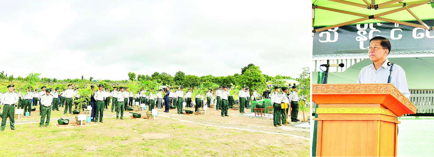 နိုင်ငံတော်စီမံအုပ်ချုပ်ရေးကောင်စီအနေဖြင့် မြန်မာနိုင်ငံအလယ်ပိုင်း အပူပိုင်းဒေသစိမ်းလန်းစိုပြည်ရန်၊ ရာသီဥတုပြောင်းလဲမှုဒဏ်ခံနိုင်ရည်ရှိစေရန်၊ အပူဒဏ်လျော့ပါးသက်သာစေရန်၊ ကျေးလက်နေပြည်သူများအတွက် ထင်း၊ တိုင်၊ မျောစသည့် အခြေခံလိုအပ်ချက်များဖြည့်ဆည်းပေးရန် သစ်တောစိုက်ပျိုးရေးကို မြှင့်တင်ဆောင်ရွက်လျက်ရှိကြောင်း၊ တစ်ပင်စိုက်တစ်ပင်ရှင်သန်ရေးအတွက် အမြဲမပြတ် ပြုစုထိန်းသိမ်းစောင့်ရှောက်ရန်လည်း အလွန်အရေးကြီးကြောင်း။