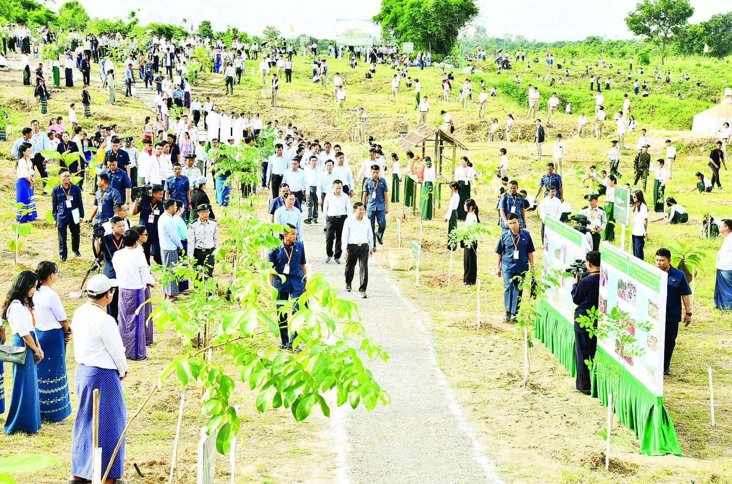 ယင်းနောက်အခမ်းအနားသို့ တက်ရောက်လာကြသည့် ကောင်စီဒုတိယဥက္ကဋ္ဌ ဒုတိယဝန်ကြီးချုပ် ဒုတိယဗိုလ်ချုပ်မှူးကြီး စိုးဝင်း၊ ကောင်စီအတွင်းရေးမှူး၊ တွဲဖက်အတွင်းရေးမှူး၊ ကောင်စီအဖွဲ့ဝင်များ၊ ပြည်ထောင်စုအဆင့်ပုဂ္ဂိုလ်များနှင့် ပြည်ထောင်စုဝန်ကြီးများ၊ ဖိတ်ကြားထားသည့် ဧည့်သည်တော်ကြီးများနှင့် ဝန်ကြီးဌာနများမှ ဌာနဆိုင်ရာ အရာထမ်း၊ အမှုထမ်းများနှင့် တာဝန်ရှိသူများ၊ နေပြည်တော်ကောင်စီနယ်မြေအတွင်းရှိ အခြေခံပညာကျောင်းများနှင့် တက္ကသိုလ်၊ ကောလိပ်များမှ ဆရာ၊ ဆရာမများနှင့် ကျောင်းသား၊ ကျောင်းသူများသည် ပျိုးပင်များကို တစ်ပြိုင်တည်း စိုက်ပျိုးပေးကြသည်။