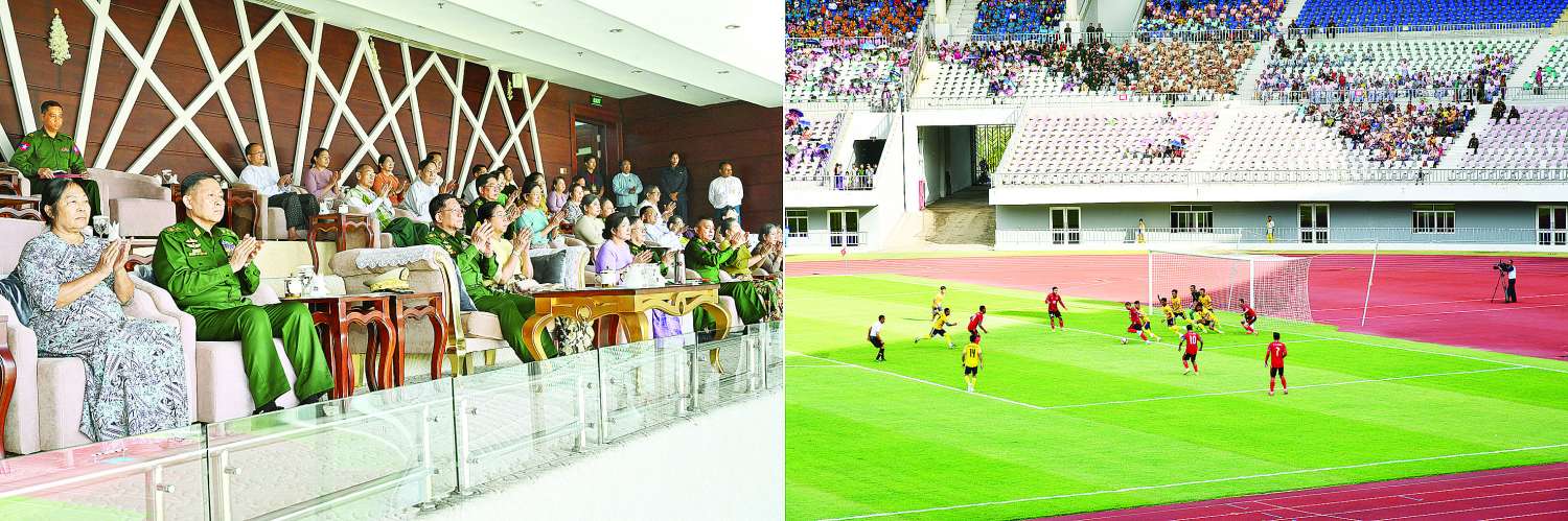 ယင်းနောက် နိုင်ငံတော်စီမံအုပ်ချုပ်ရေးကောင်စီဥက္ကဋ္ဌ တပ်မတော်ကာကွယ်ရေးဦးစီးချုပ်နှင့် အခမ်းအနားတက်ရောက်လာကြသူများသည် တပ်မတော်ကာကွယ်ရေးဦးစီးချုပ်ဖလား ဘောလုံးပြိုင်ပွဲ ဒုတိယအဆင့်အုပ်စုပတ်လည်ပြိုင်ပွဲအဖြစ် နေပြည်တော်တိုင်းစစ်ဌာနချုပ်ကိုယ်စားပြုအသင်းနှင့် ကာကွယ်ရေးဦးစီးချုပ်ရုံး(ကြည်း) ကိုယ်စားပြု အသင်းတို့ ယှဉ်ပြိုင်ကစားနေမှုကို ကြည့်ရှုအားပေးကြသည်။ အဆိုပါပွဲစဉ်တွင် တစ်ဖက်နှင့်တစ်ဖက်ရလဒ်ကောင်းရရှိနိုင်ရေး အပြန်အလှန် ဖိအားပေးကစားခဲ့ကြသော်လည်း ကာကွယ်ရေးဦးစီးချုပ်ရုံး(ကြည်း) ကိုယ်စားပြုအသင်းက အချိတ်အဆက်မိမိ၊ ကစားကွက်မိမိဖြင့် ဘောလုံးပိုင်ဆိုင်မှု အသာစီးရယူကာ ကစားနိုင်ခဲ့သောကြောင့် ပွဲကစားချိန်မိနစ် အားလုံးပြီးဆုံးချိန်တွင် ကာကွယ်ရေးဦးစီးချုပ်ရုံး (ကြည်း) ကိုယ်စားပြုအသင်းက နေပြည်တော်တိုင်းစစ်ဌာနချုပ် ကိုယ်စားပြုအသင်းကို လေးဂိုး - တစ်ဂိုးဖြင့် အနိုင်ရရှိသွားသည်။